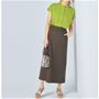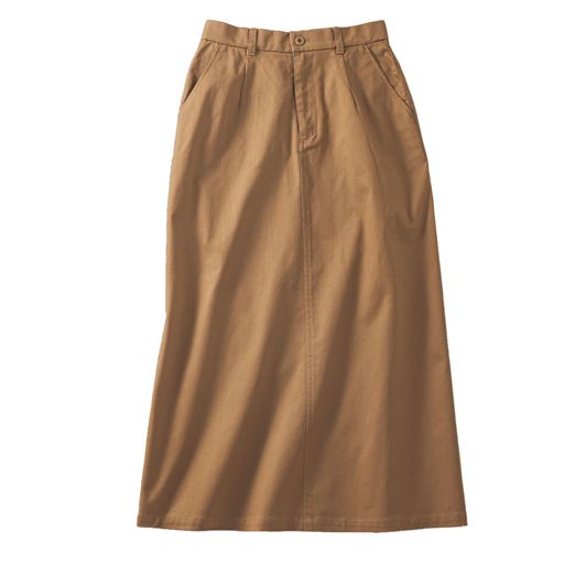 普段パンツ派の人にも取り入れやすいチノ素材のスカートは、きれいな綿混の表面感と広がり過ぎないAラインで程よいカジュアル感。フロントはファスナー開きの本格仕様なのできちんと見えも叶います。伸縮性のある綿混素材。ウエストはギャザーなしの総ゴムなのでスマートにはきこなせ、前後左右のポケットが嬉しい。後ろ中心のスリットで足さばきも快適に!