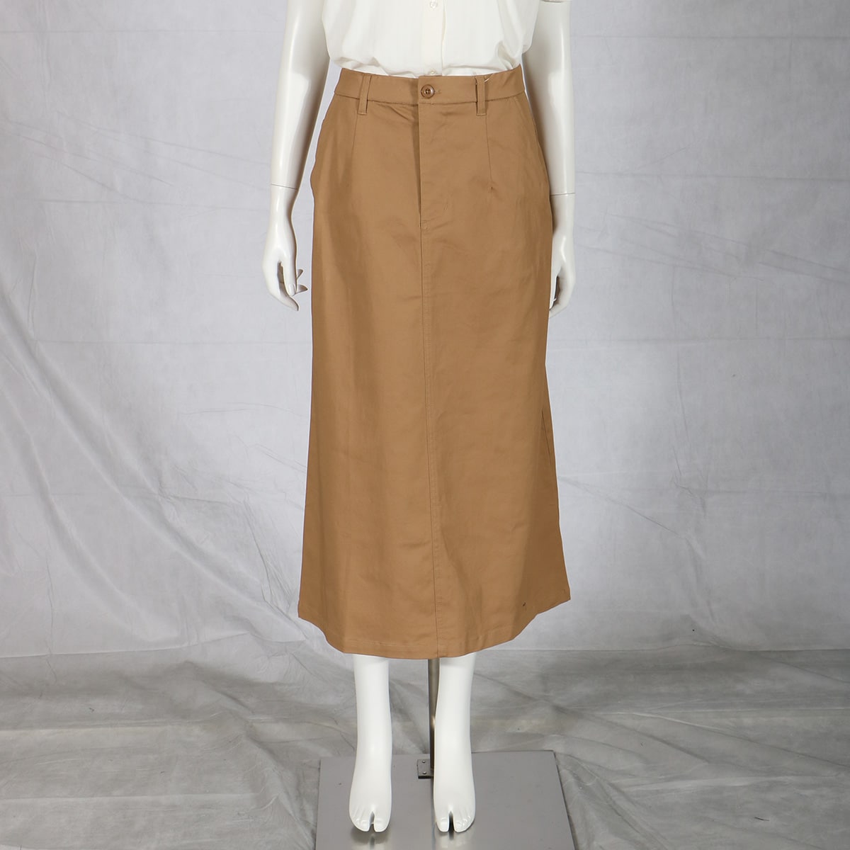 ■綿98%ポリウレタン2%(ストレッチツイル)●ファスナーあき・ウエスト総ゴム仕様・前後左右ポケット・後ろ中心スリットあり●洗濯機OK●中国製