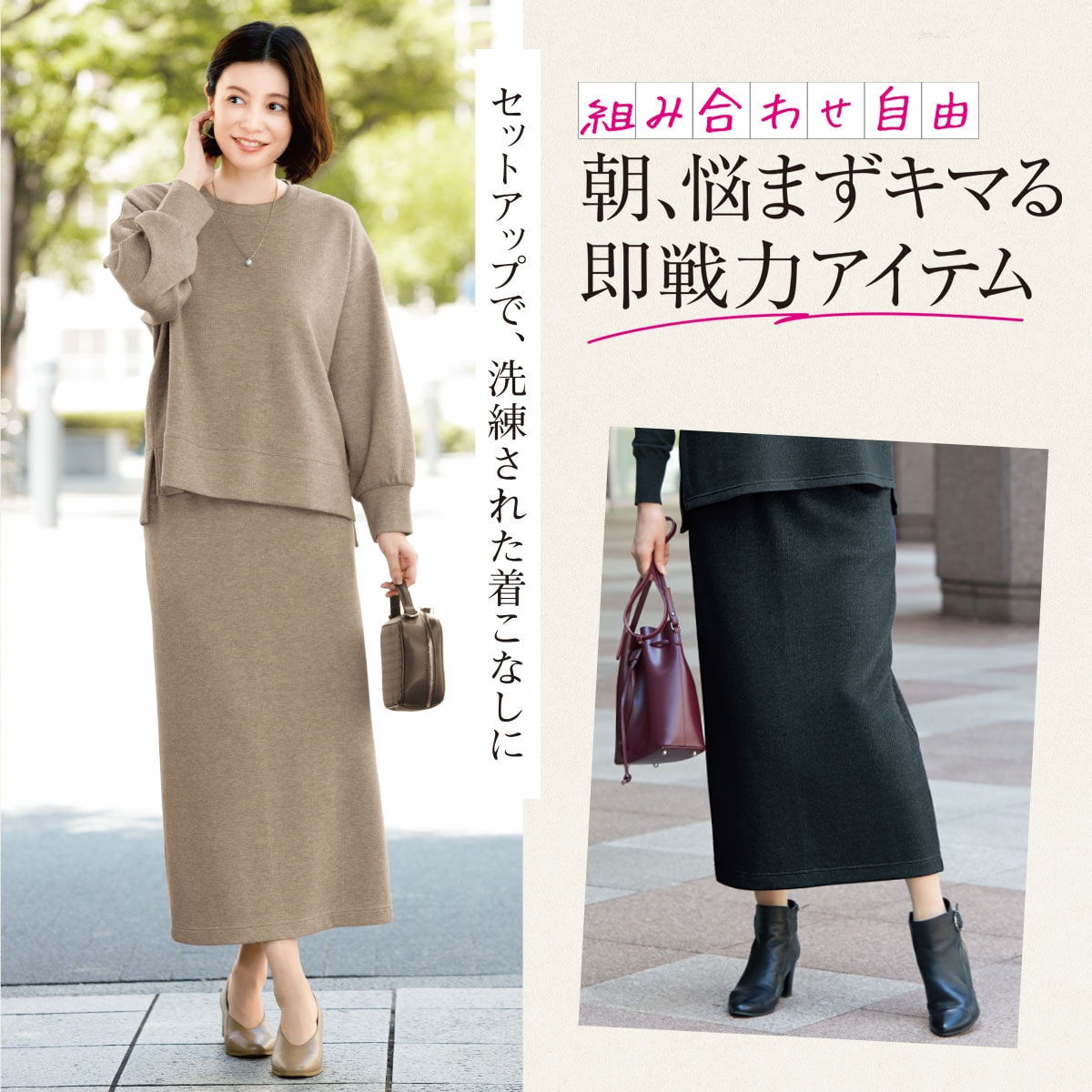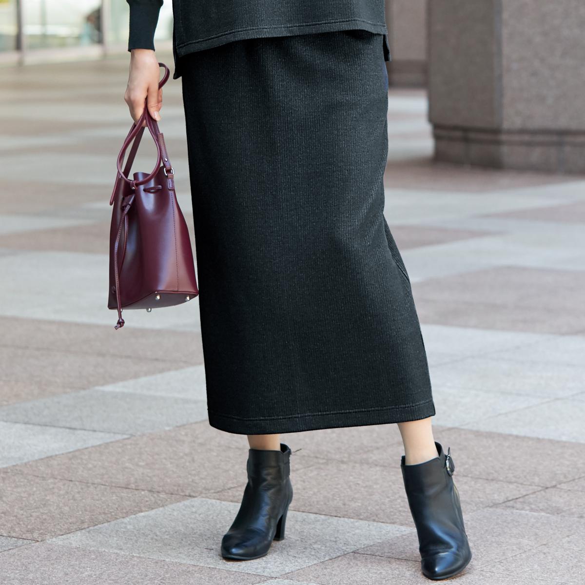 やや長め丈で上品に見えつつ、後ろスリットで歩きやすさも◎