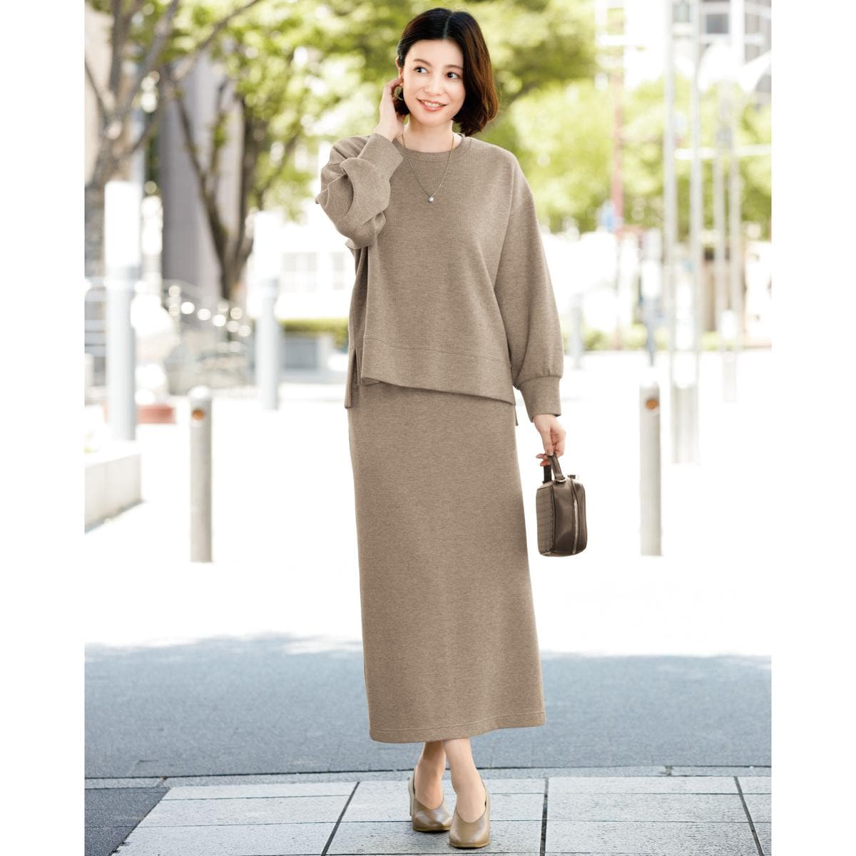 -お買い得ポイント-微起毛素材であたたかく優しい肌ざわりが気持ちいい。朝、悩まずキマる即戦力アイテム!-デザイン-サッと着るだけでこなれ感のある着こなしに。やや長め丈で上品に見えつつ、後ろスリットで歩きやすさも◎-素材特徴-お家の洗濯機で洗えて、柔らかな肌ざわりが特徴です。