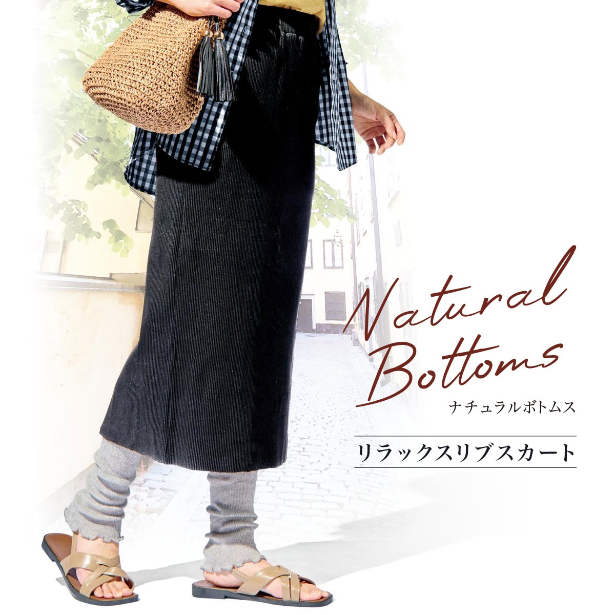 ナチュラルボトムス!リラックスリブスカート。