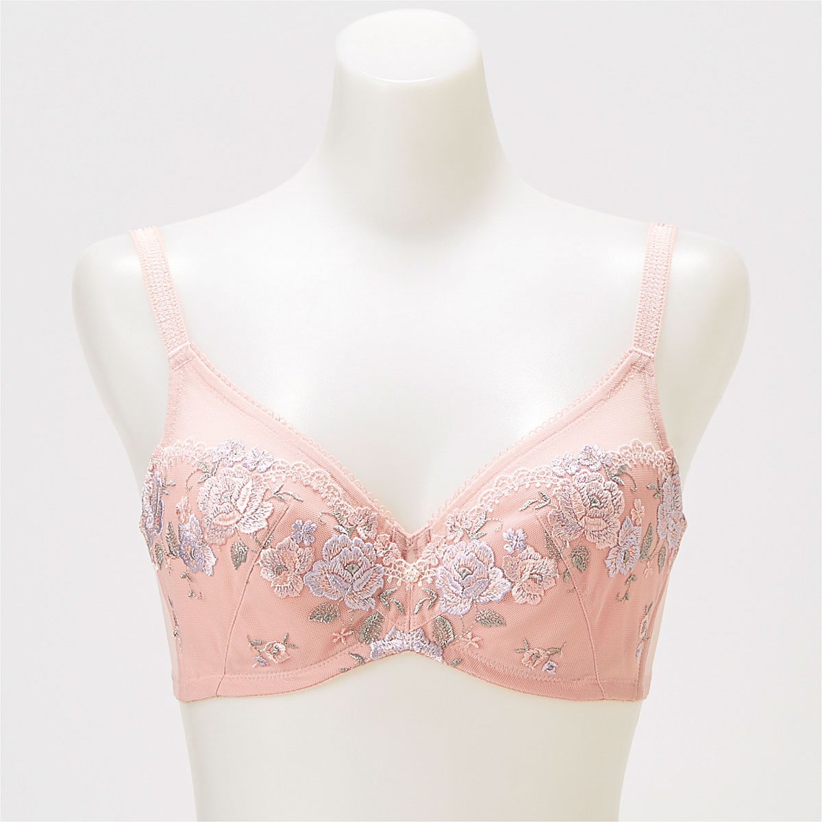 大きなバストで太って見えるというグラマーさんのお悩みはこのブラで解決!サイドシェイプと高さを抑えるスゴ技カップで1カップ小さく見せます。左右のボーンから寄せてきたバストを中心に集めてサイドをシェイプ。さらにカップ内でボリュームを分散させ、高さを出さずにコンパクトに。薄手のカップで余計なボリュームも出しません。上辺パワーネットで気になるバストの揺れを軽減。これで着やせも思いのまま!