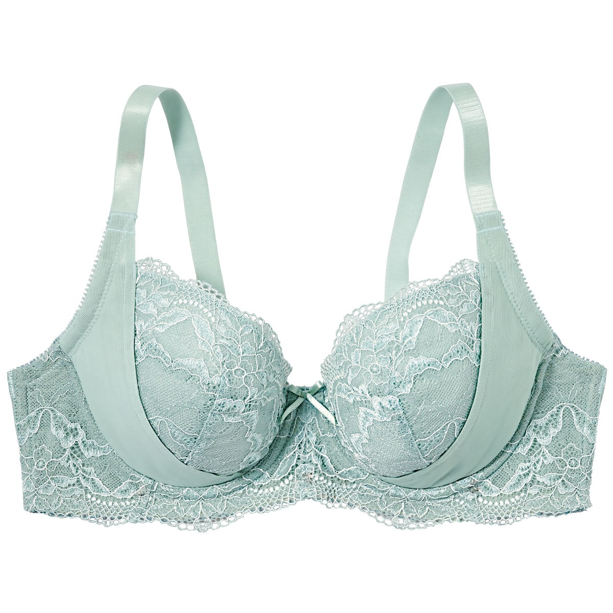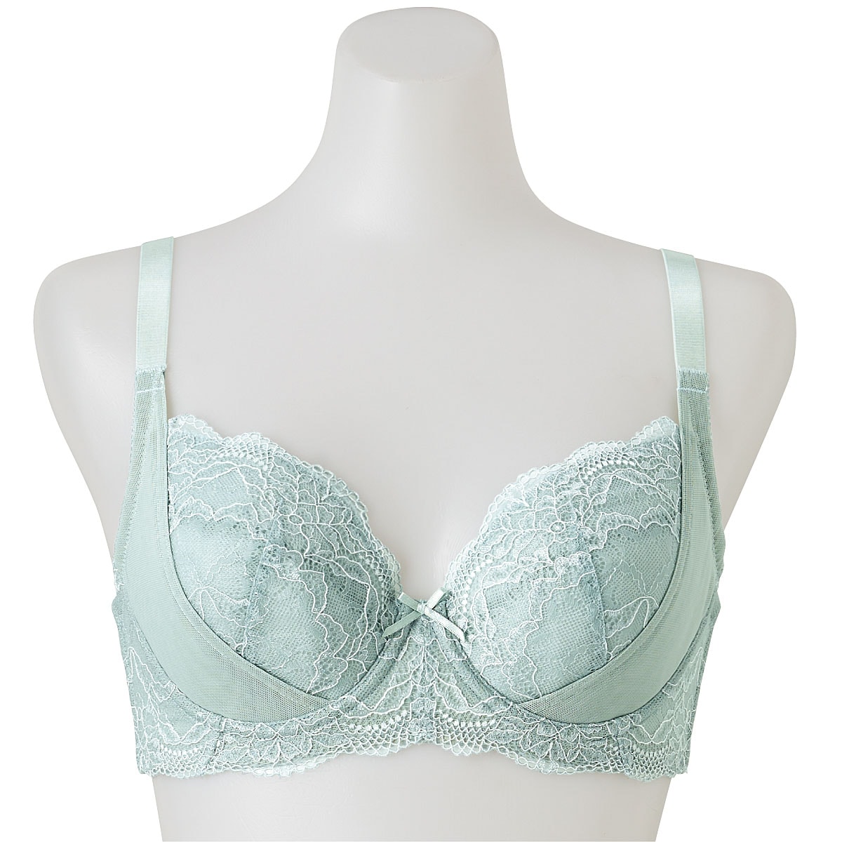 広がるバストをキュッと寄せて、ぐっとスリム!スレンダーフィット®ブラフロスティグリーン着用例