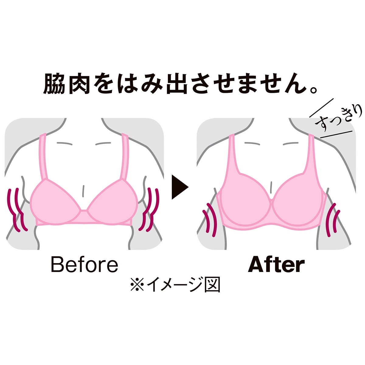 カップからはみ出すバスト、脇でもたつくぷよ肉を心地よくメイク。シルエットがスマートになるのでアウターの着こなしも決まり、自分に自信が持てるはず!発売以来、人気の脇肉すっきりブラです。