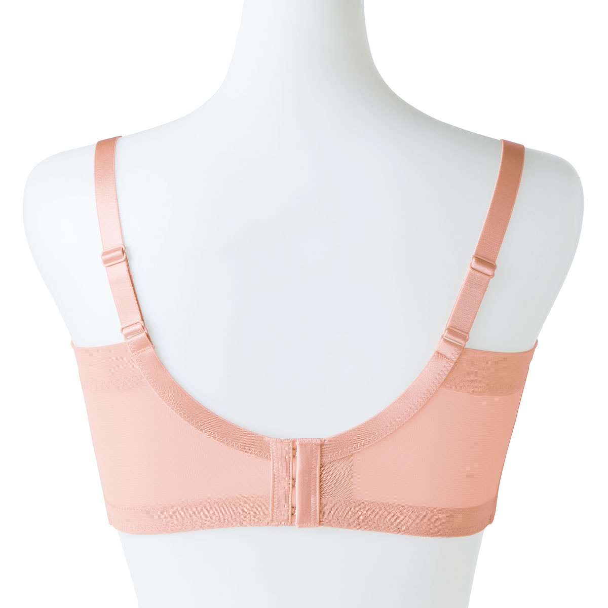 カップは内向き設計。脇から集めたバストの横広がりを防ぎ、バストシルエットをすっきり整える。