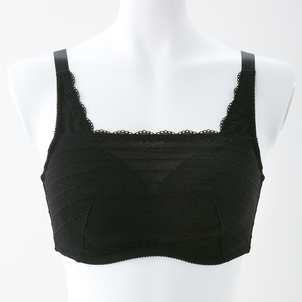 ブラック 着用例一枚布でグラマーバストをすっきりボリュームダウンするブラ