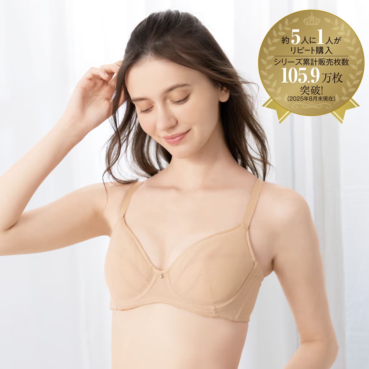 肌側はすべて綿混素材のやさしさ仕上げが人気の理由!ブラストレスを軽減する「Tシャツみたいなブラ®」の薄手で軽い着け心地のさらっと綿混メッシュタイプ