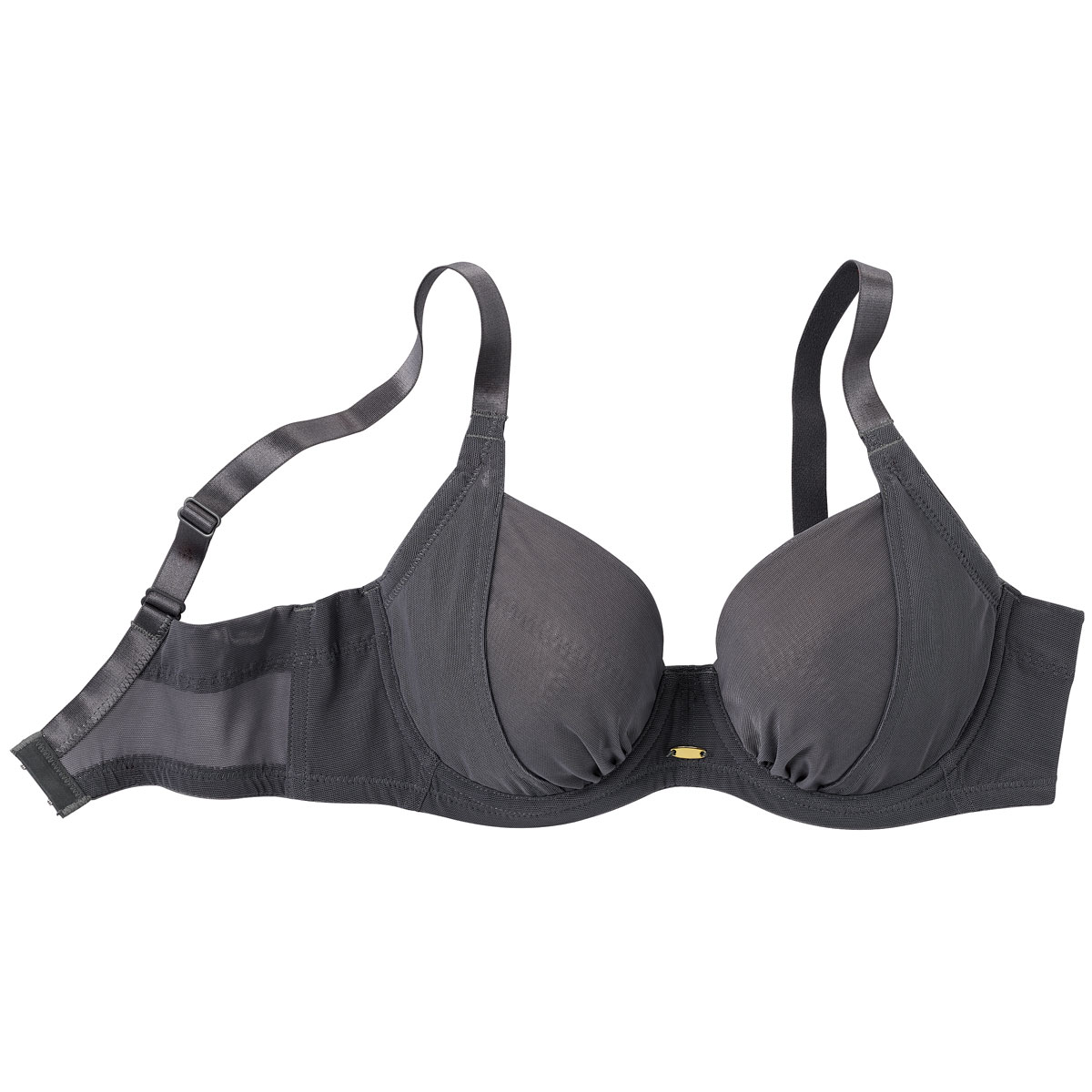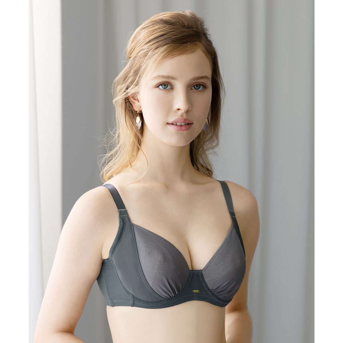 バストをキュッと内向きメイク!軽い着心地のシンプルなスレンダーフィット®ブラシャドーグレー着用例