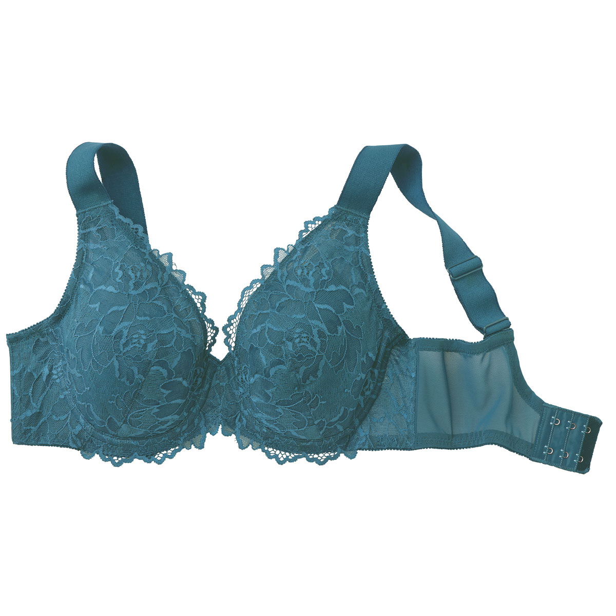 極太ストラップでラクなのに、バストをしっかり引き上げ! ティールブルー着用例