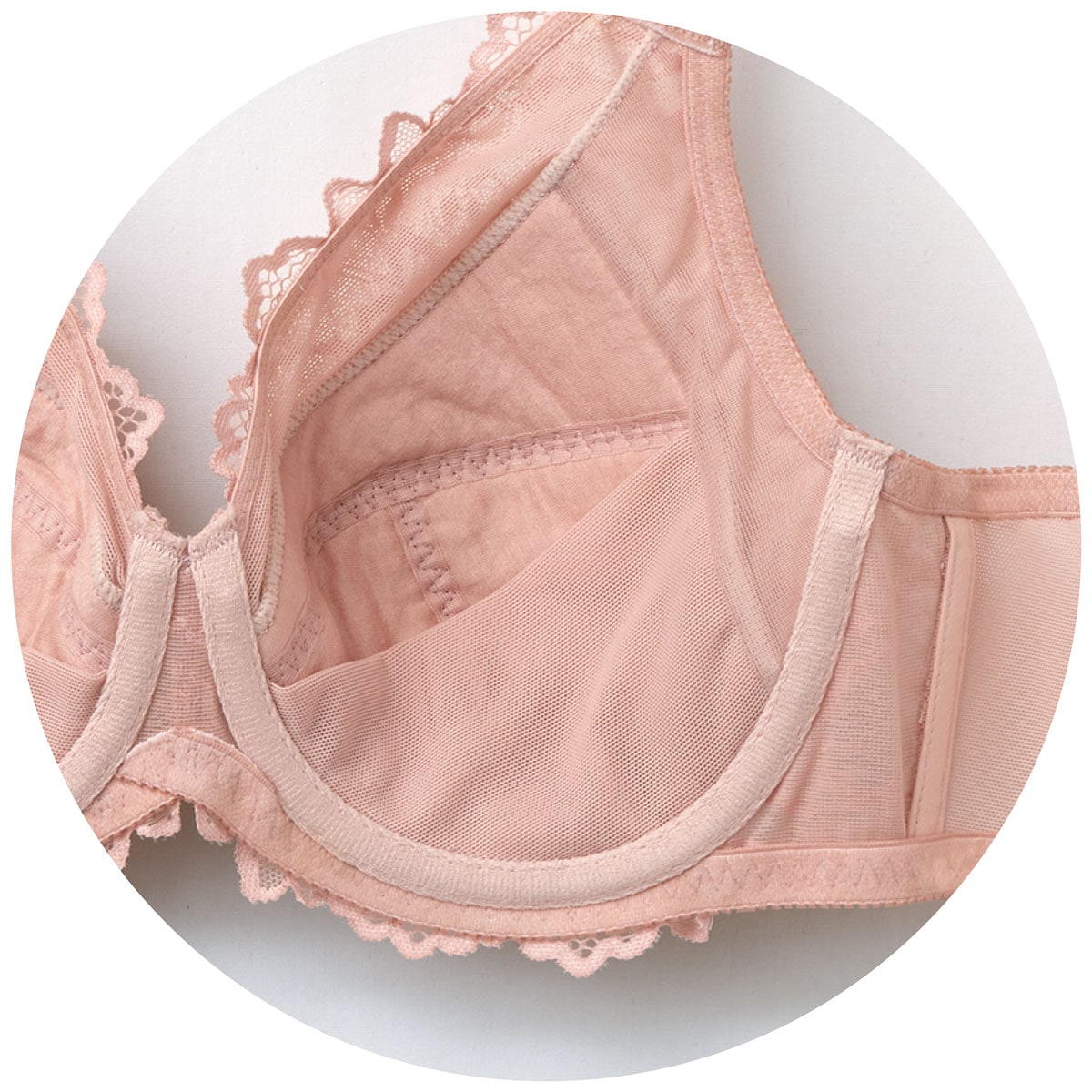 3枚接ぎカップで丸みのあるきれいなバストに仕上げます。さらにカップ裏のパネルで下カップもすっきり。