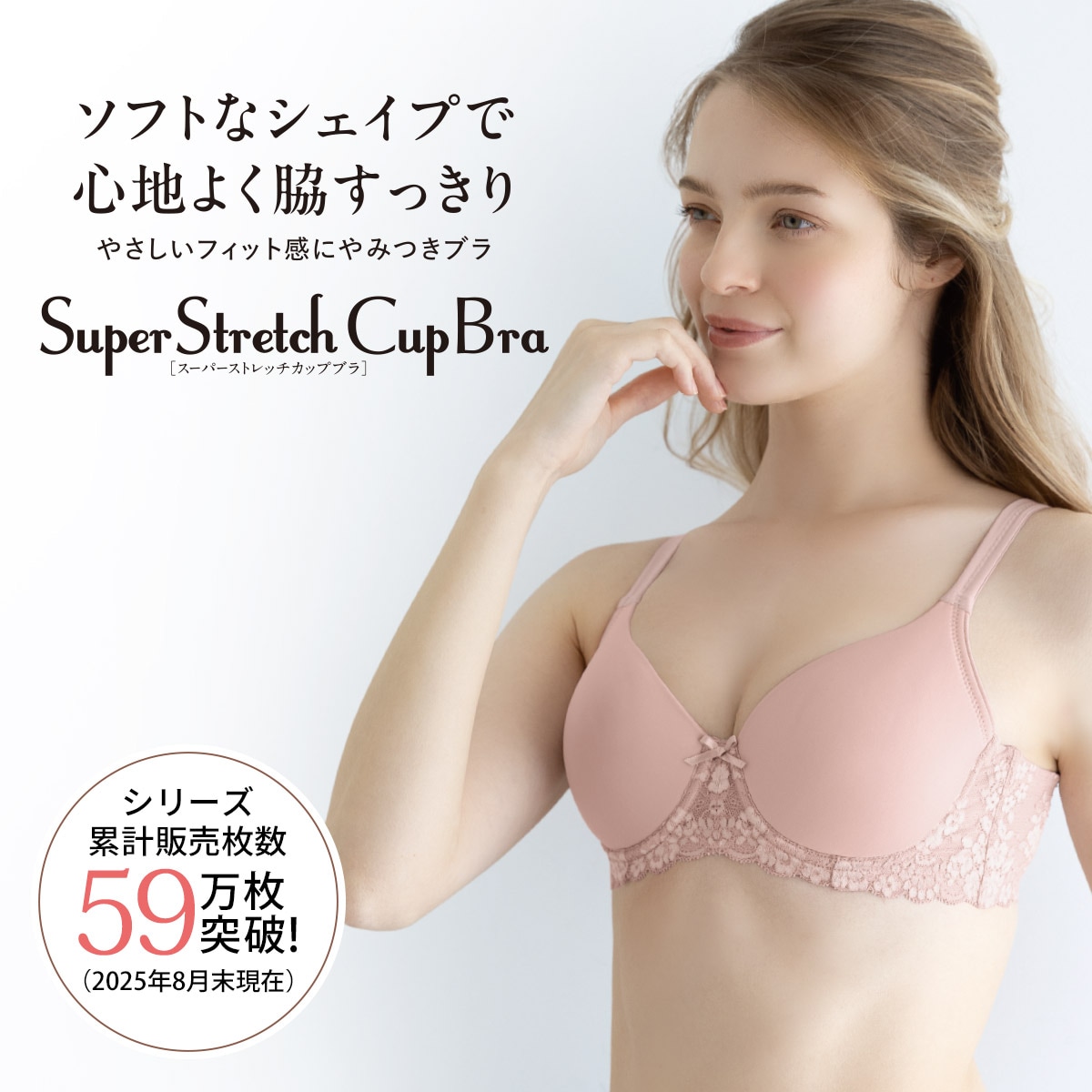 【累計販売枚数59万枚突破!(2025年8月末現在)】カップがほどよく伸びてバストにピタっとフィット、スーパーストレッチカップブラの脇すっきりタイプ
