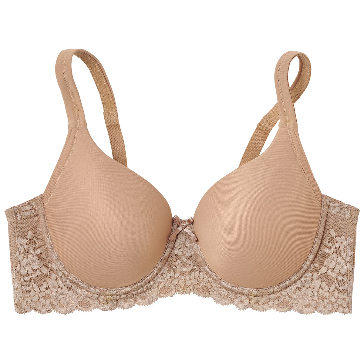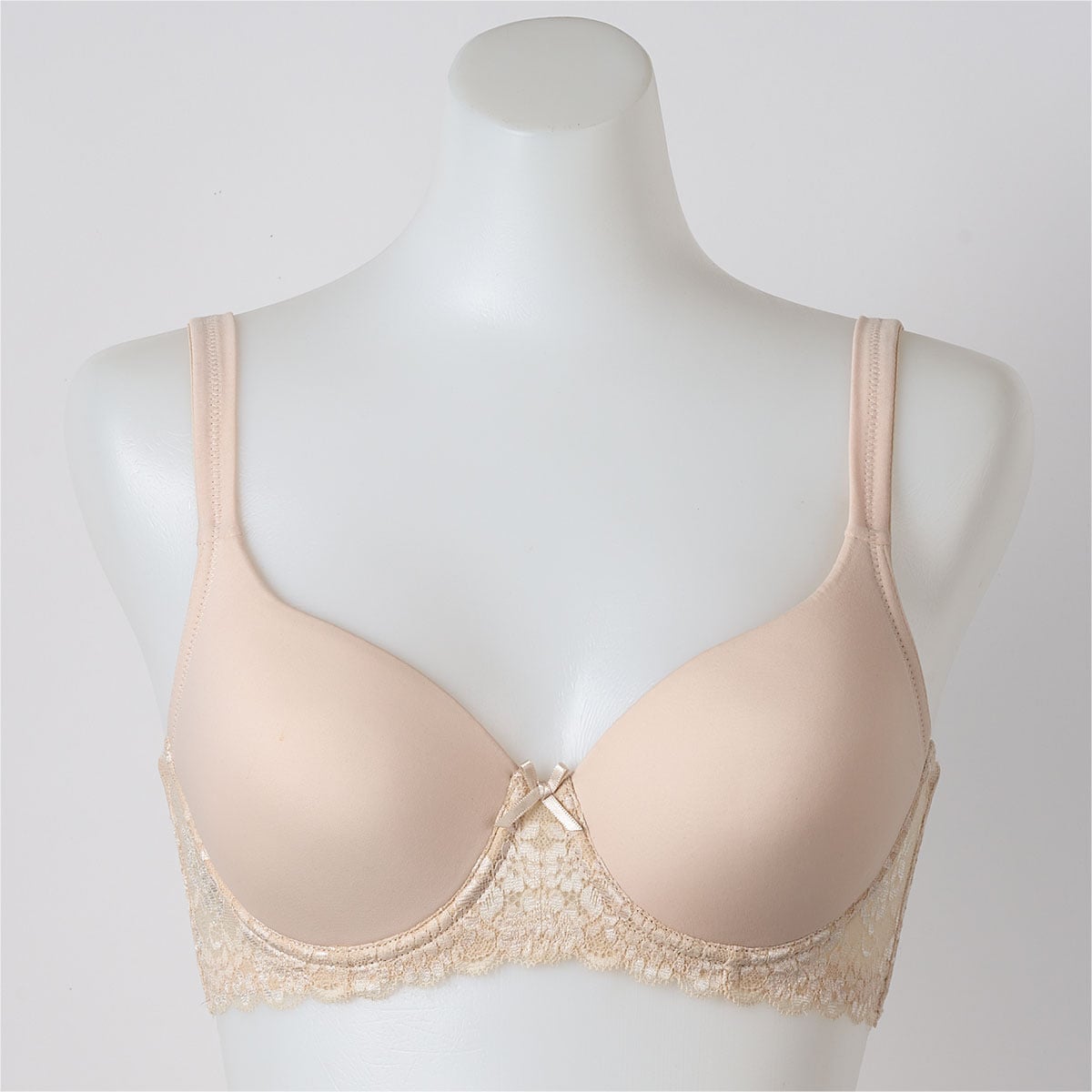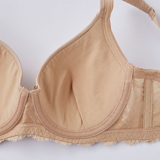 脇をすっきり整えるシームレスカップブラ/涼しげレース(スーパーストレッチカップ)(ソフトワイヤー入り・3/4モールドカップ)