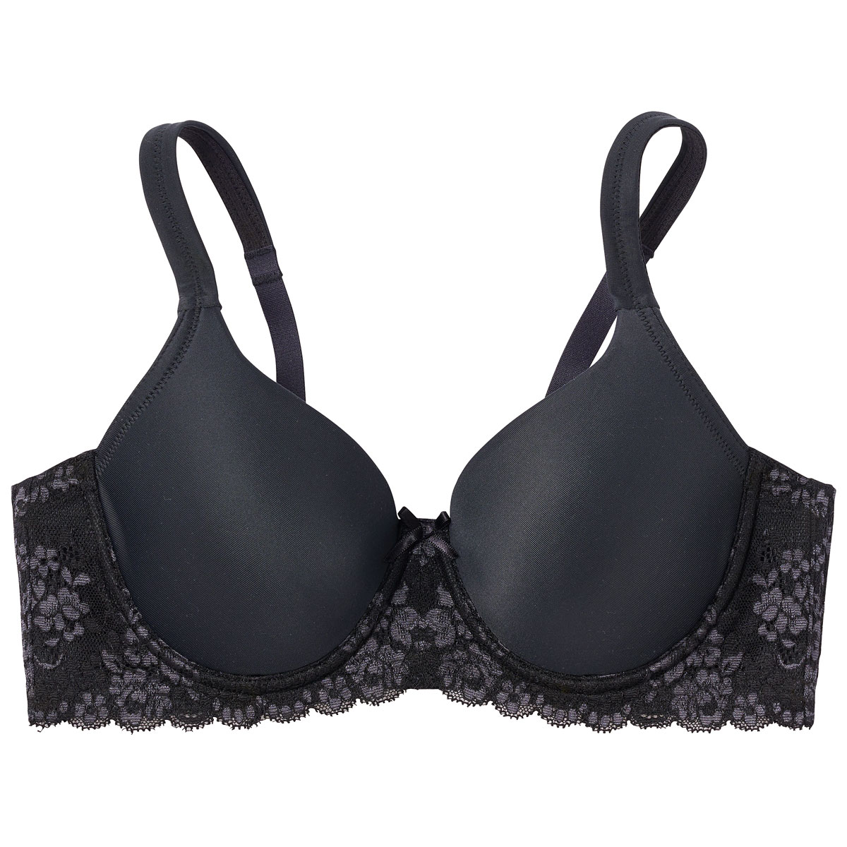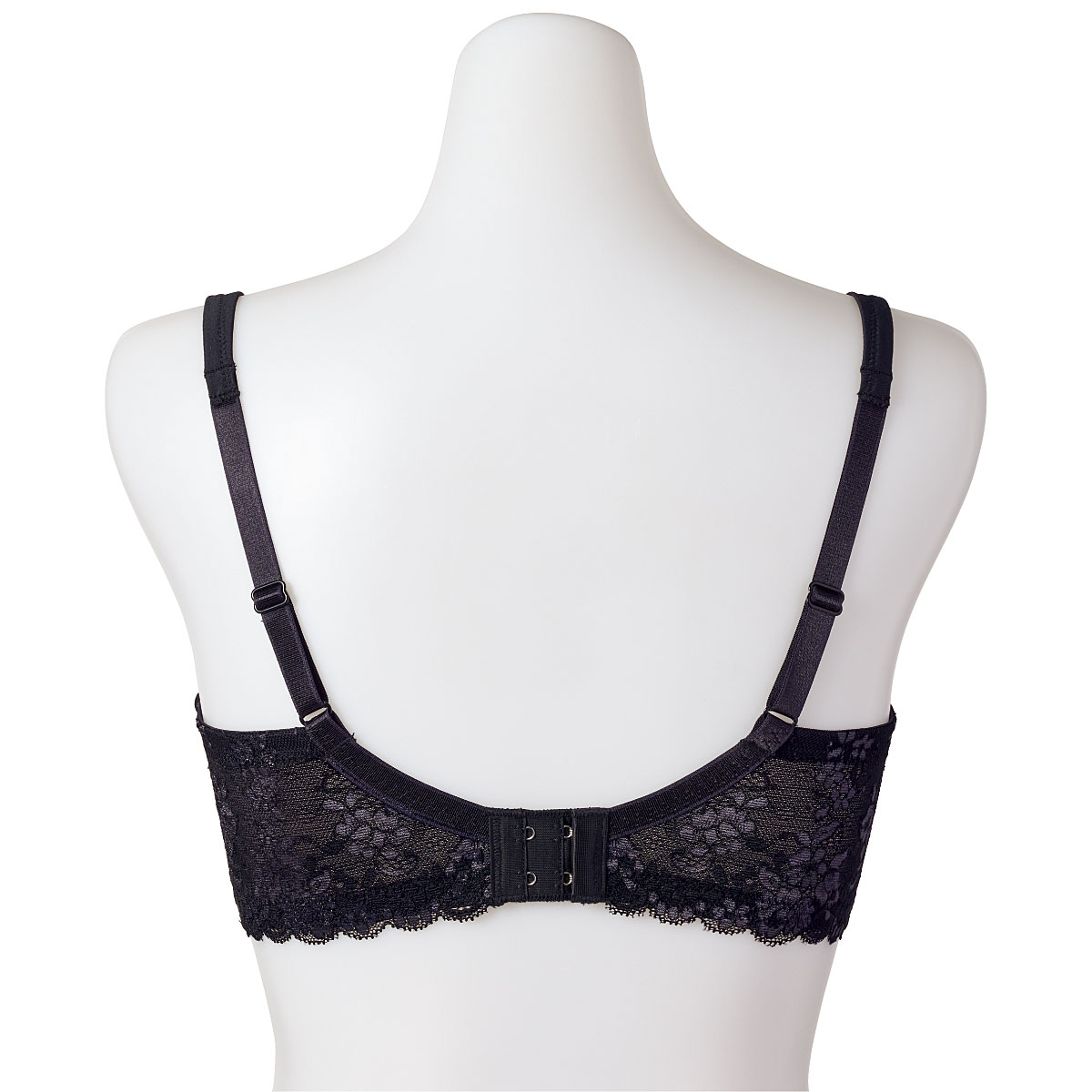 伸縮性のあるレースとパワーネットが脇にピタッと密着して幅広い面でソフトにシェイプ。気になるサイドラインはすっきり!ほどよく伸びるやわらかストレッチカップがバストにピタッとフィットして心地よくなじむ。カップがつるんとしているので、アウターもスマートに着こなせます。よく伸びる幅広ストラップはくい込みにくく、肩もラク!上下辺のゴムはフラットで伸びが良く、締めつけ感も軽減。ワイヤー入りなのに、ラクで快適な着け心地です。
