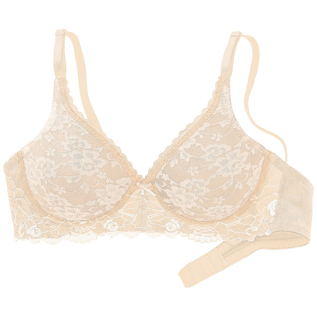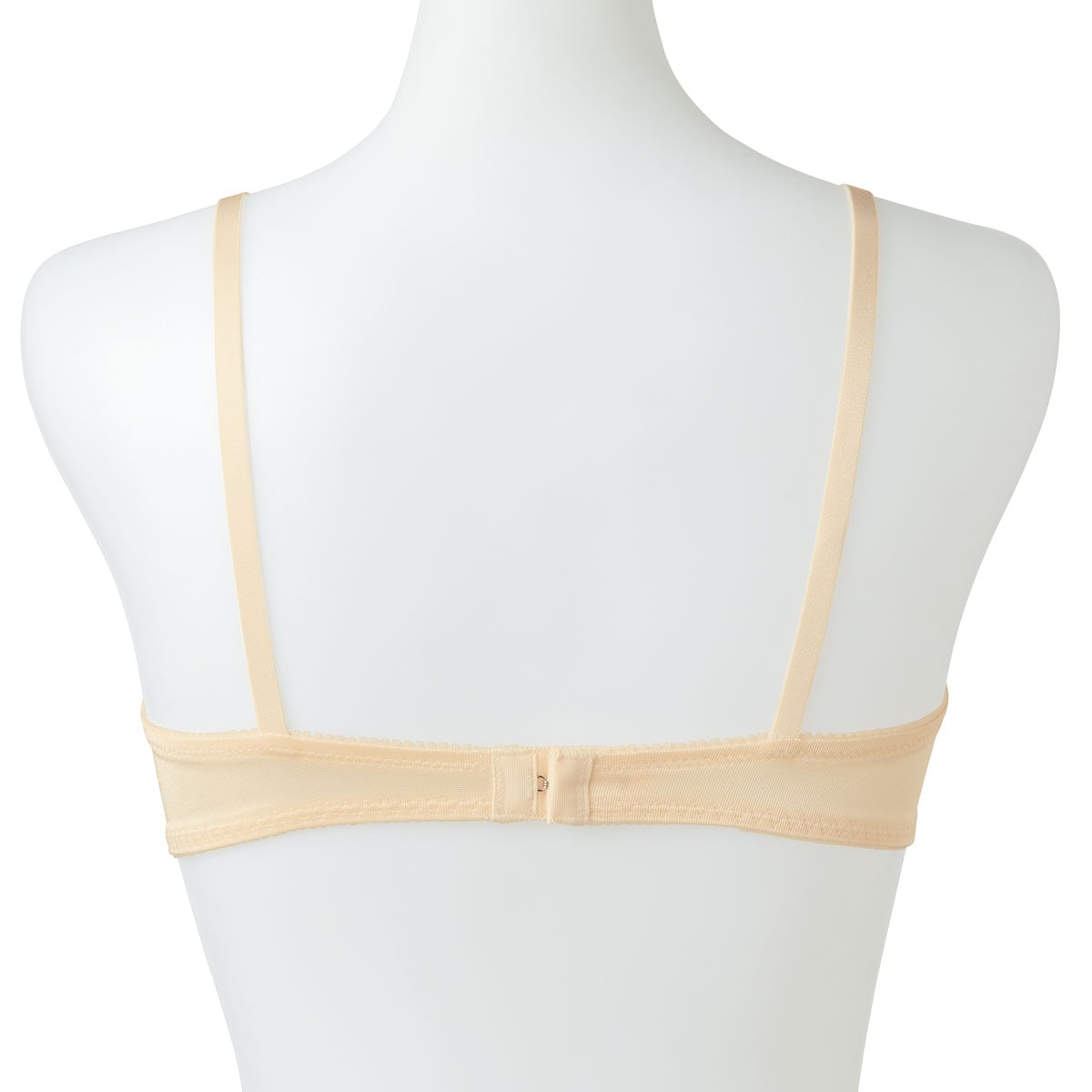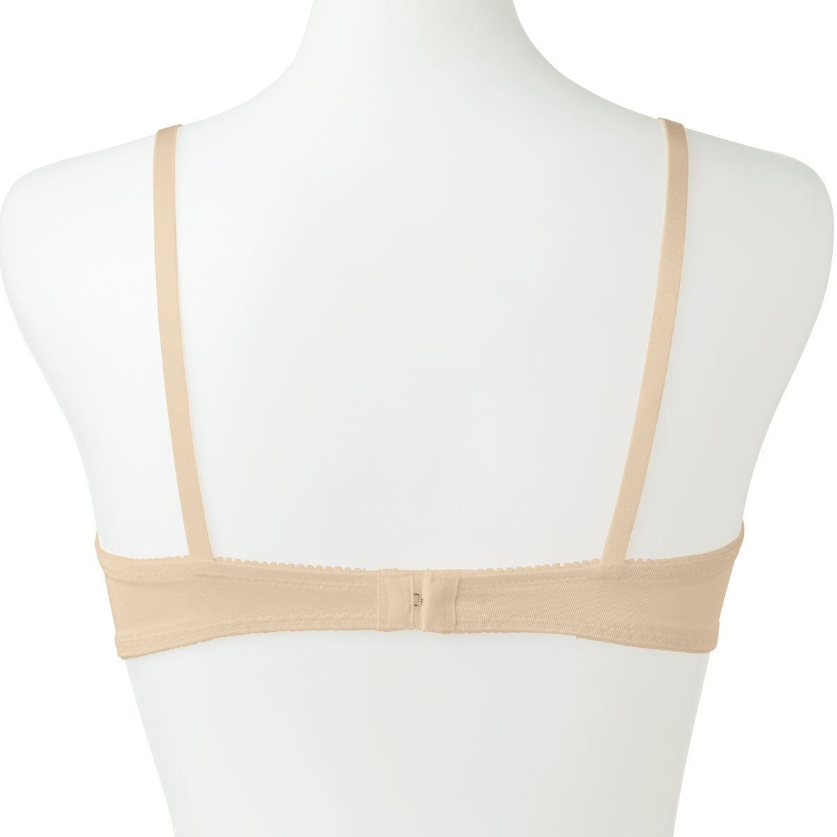 ナチュラルベージュ (1)アウターにひびきにくいモールドカップ。(2)ノンワイヤーで締め付けにくい。