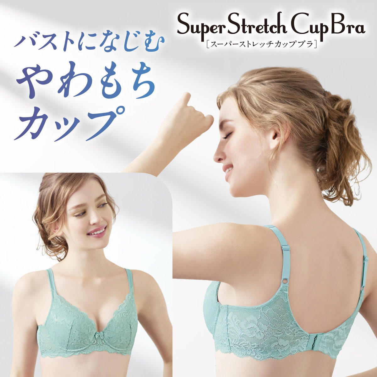 【シリーズ累計販売枚数54万枚突破!(2023年8月現在)】ぐ~んと伸びるカップがバストに快適密着。どんな動きにもブラがフィットして締めつけもない!大人気のスーパーストレッチカップの背中すっきりレーシィータイプ。