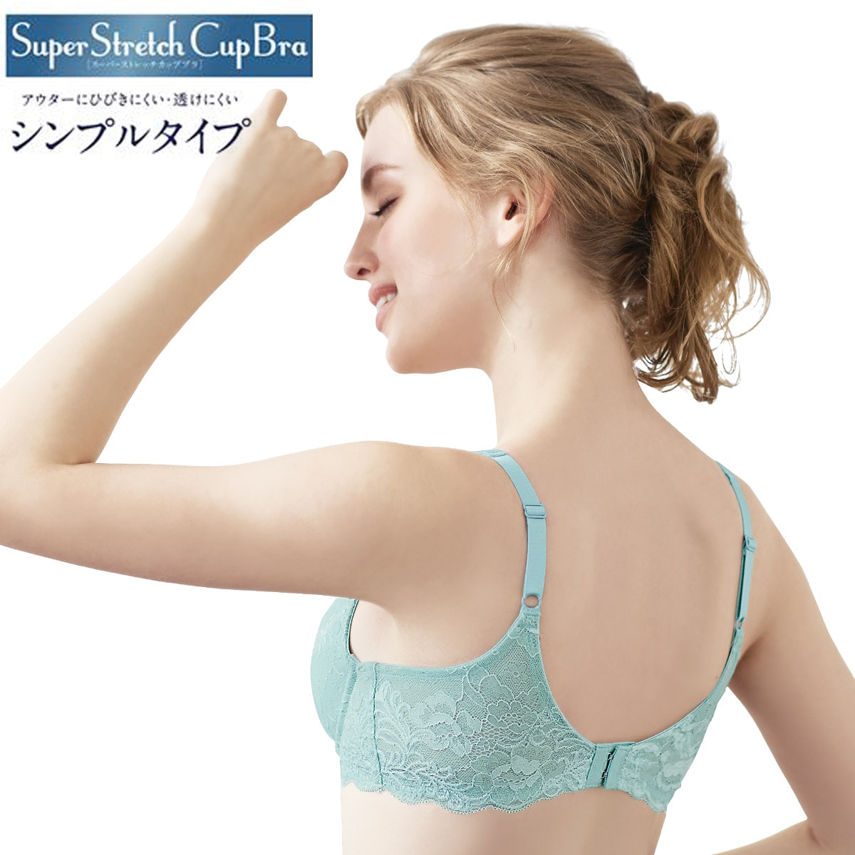 【シリーズ累計販売枚数54万枚突破!(2023年8月現在)】ぐ~んと伸びるカップがバストに快適密着。どんな動きにもブラがフィットして締めつけもない!大人気のスーパーストレッチカップの背中すっきりレーシィータイプ。