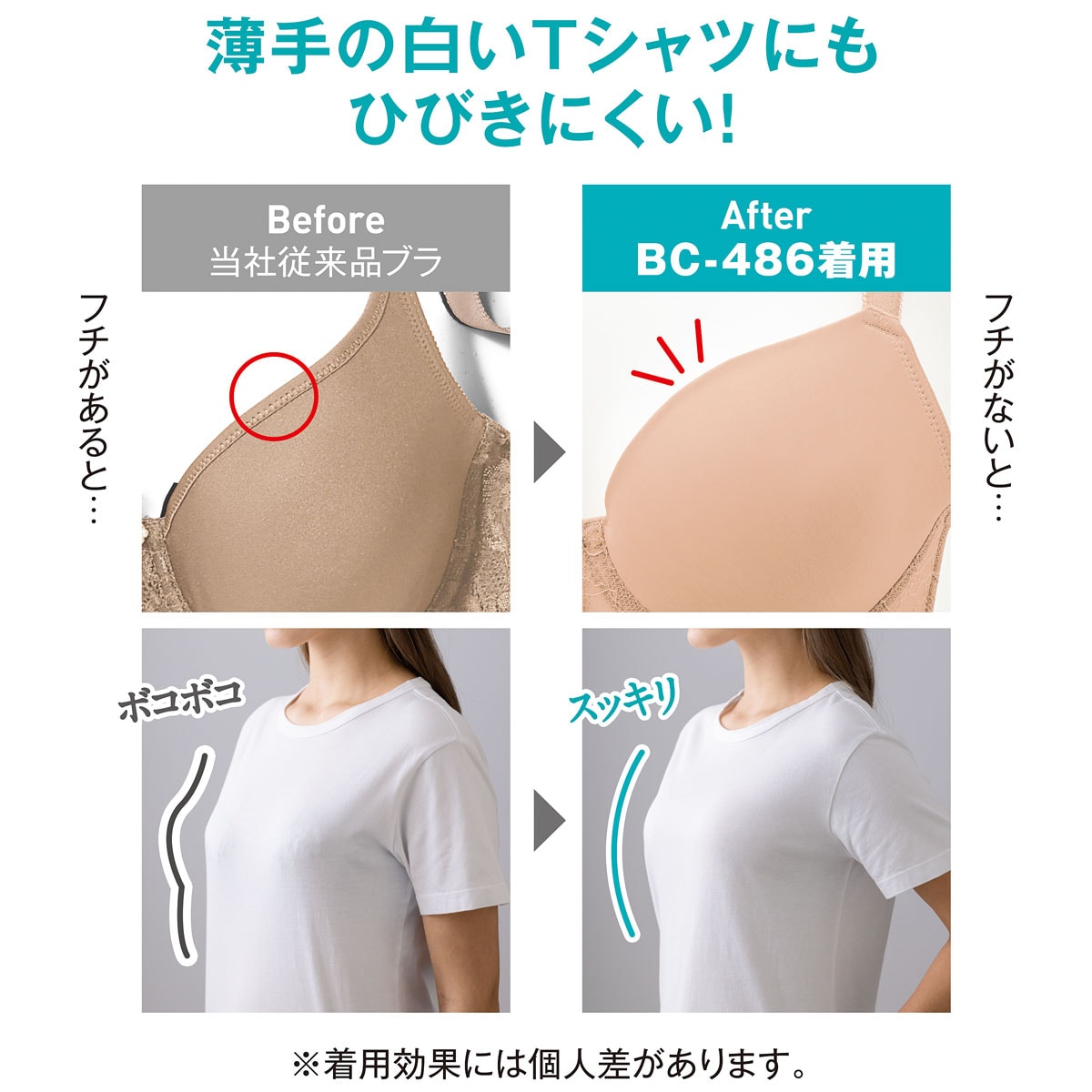シームレスカップとレース+パワーネット素材の脇生地でピタッとしたアウターにも響きにくく、オシャレも両立できます!カップは穴あき+カップ裏生地は吸汗速乾機能のある優れたメッシュ素材を使用し、ムレにくくオールシーズン快適です。ウレタンカップは約2mmと薄く厚みを出さないようになっています。ブラジャーが消えた?!と思うほどアウターにひびきにくく仕上げました。カラーも透けいにくいカラー展開になています。消える?!ブラ、消えるかどうかお試しください♪