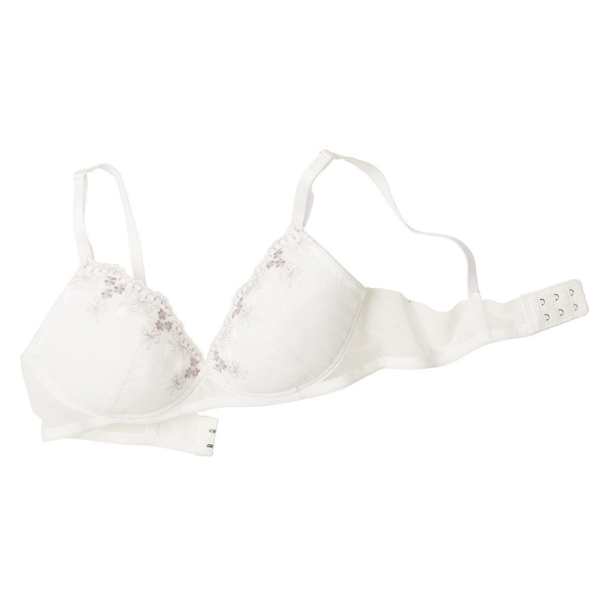 さらかる®ブラのティーンズバージョンが登場☆彡E80までの大きいサイズも展開!汗ばむ季節や体育、部活時もメッシュ生地でムレにくく快適に過ごせます!白とグレーのグラデーション糸の刺しゅうでかわいさもバツグン♪