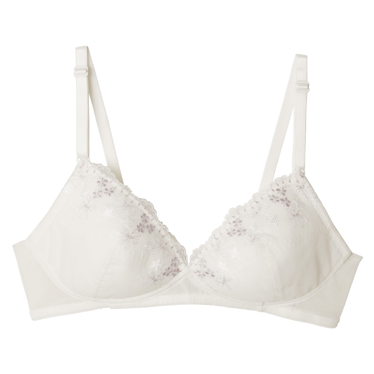 さらかる®ブラのティーンズバージョンが登場☆彡E80までの大きいサイズも展開!汗ばむ季節や体育、部活時もメッシュ生地でムレにくく快適に過ごせます!白とグレーのグラデーション糸の刺しゅうでかわいさもバツグン♪