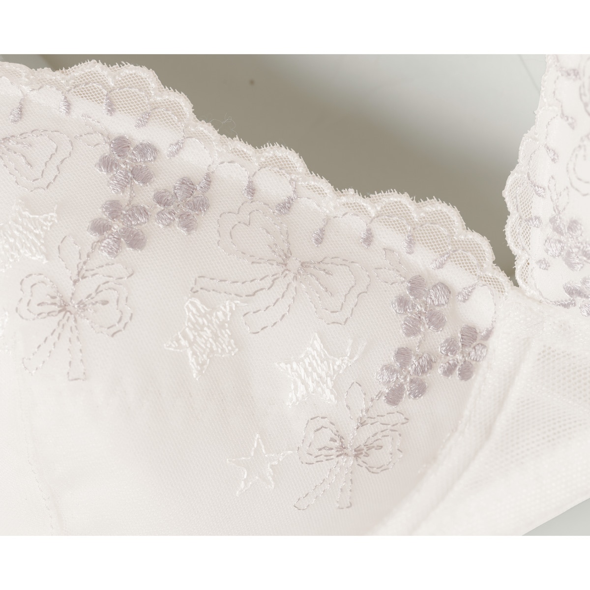白とグレーのグラデーション糸でキュートな刺繍