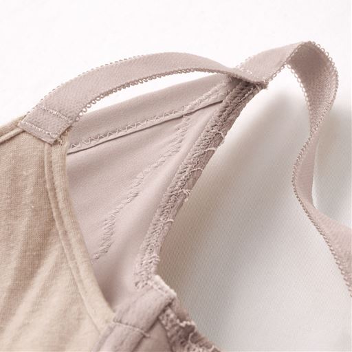 モールドカップと表生地を縫い止めないセパレート仕様で、どんなバストにも合いやすく動きやすさもキープ
