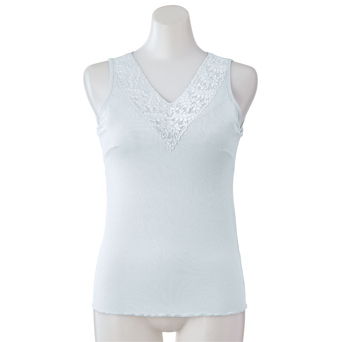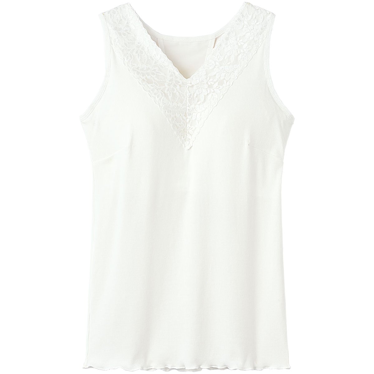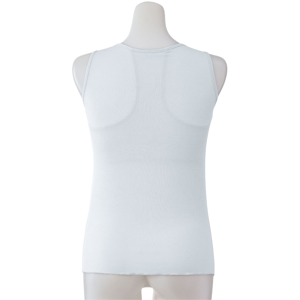 ブラジャーを内蔵したタンクトップ。背中は肩甲骨の間を意識するようにYバックのパワーネット仕様。着るだけで背筋を意識してピンっと伸ばし若々しい印象に。襟ぐりはレース仕様。レースは身生地の上に付けているので肌が透けません。カップ上辺はかがんでも胸元が見えないようになっています。身生地はリブ素材で締め付けず心地よい着用感です。