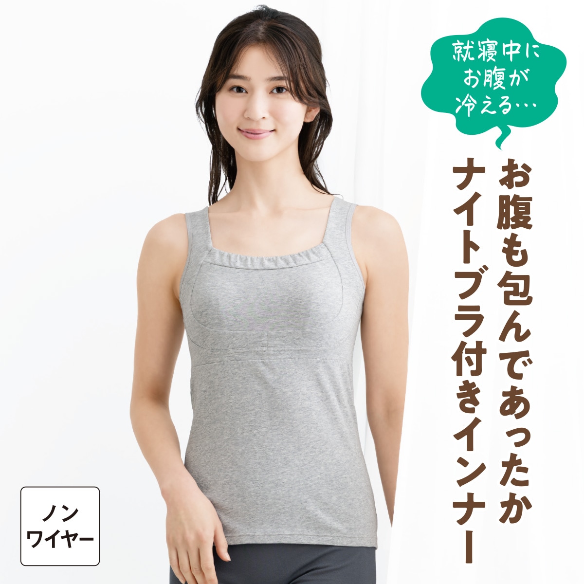 「就寝中のお腹の冷えが気になる」「着替える時、ブラをつけるのが寒くて辛い」と感じたことはありませんか?そんなお悩みにぴったりの日中もそのまま使えるナイトブラインナーが登場!タンクトップ型のナイトブラだから、お腹も覆ってくれて安心感があります。背中からカップ脇までをパワーネットがホールドしてくれるからバストも安定。起きてからも着替え要らずでそのまま過ごせるのがうれしい♪日中のインナーとしても使いやすいブラックと杢調のグレーをご用意いたしました。