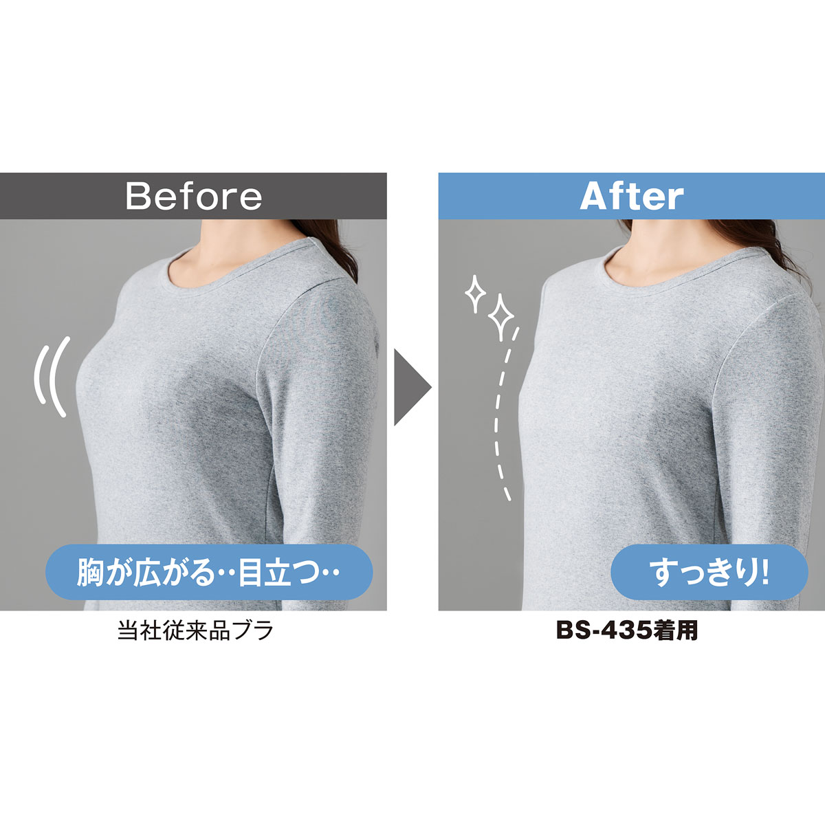 とにかくバストを小さく見せたい人に!まるでさらしを巻いたようにボリュームダウンして見せる、人気の「さらしみたいなブラ®」!トップをしっかりおさえながらも、潰したバストの広がりをおさえサイドラインはすっきりみせるサイドボーン入り。サイドボーンはシートに内蔵することで、肌あたりやくい込みを解消しました。後ろホックは4列で幅広く調節でき、上辺はアウターからのぞいても下着っぽく見えないデザイン。浴衣ブラ和装ブラ着物ブラとしてもオススメです。