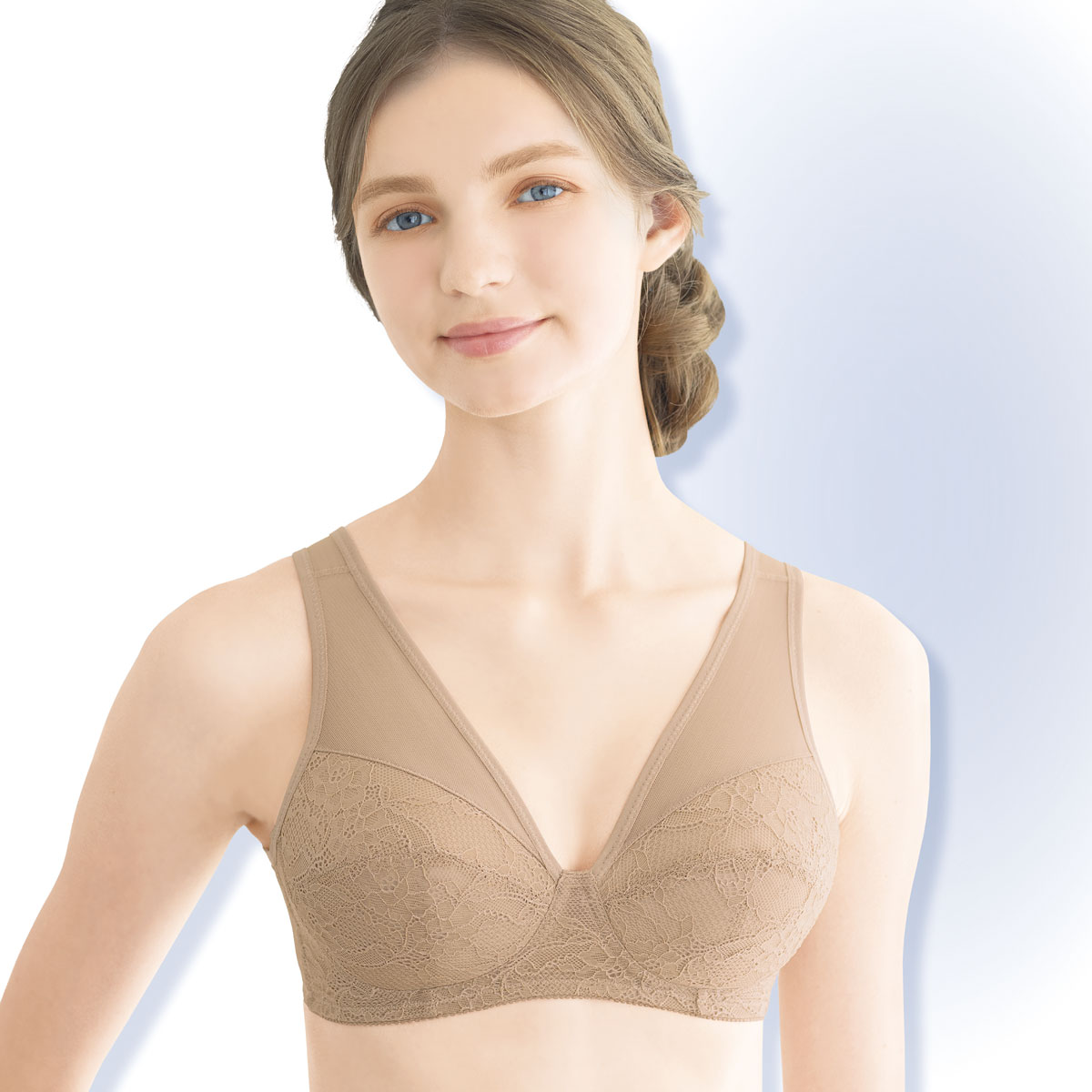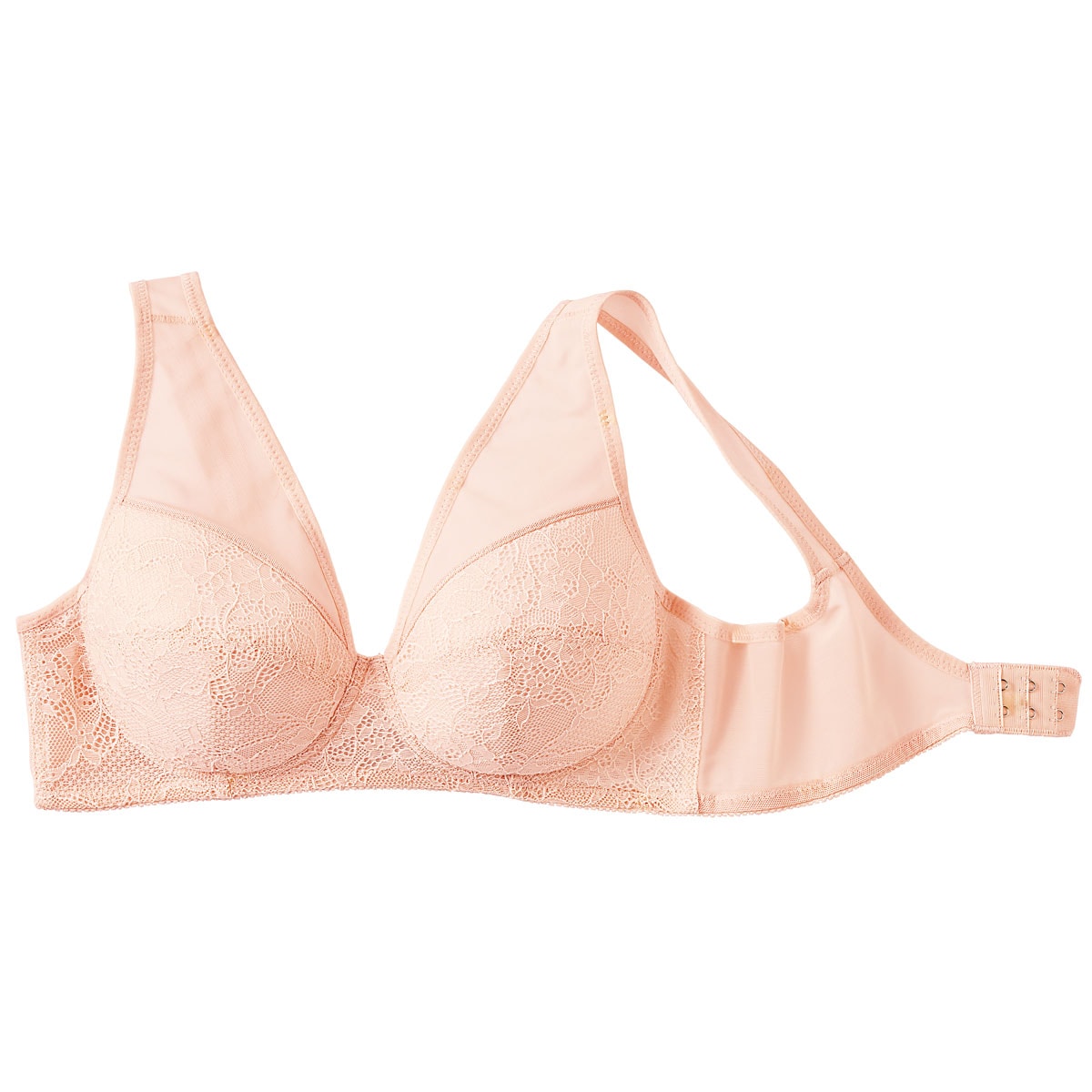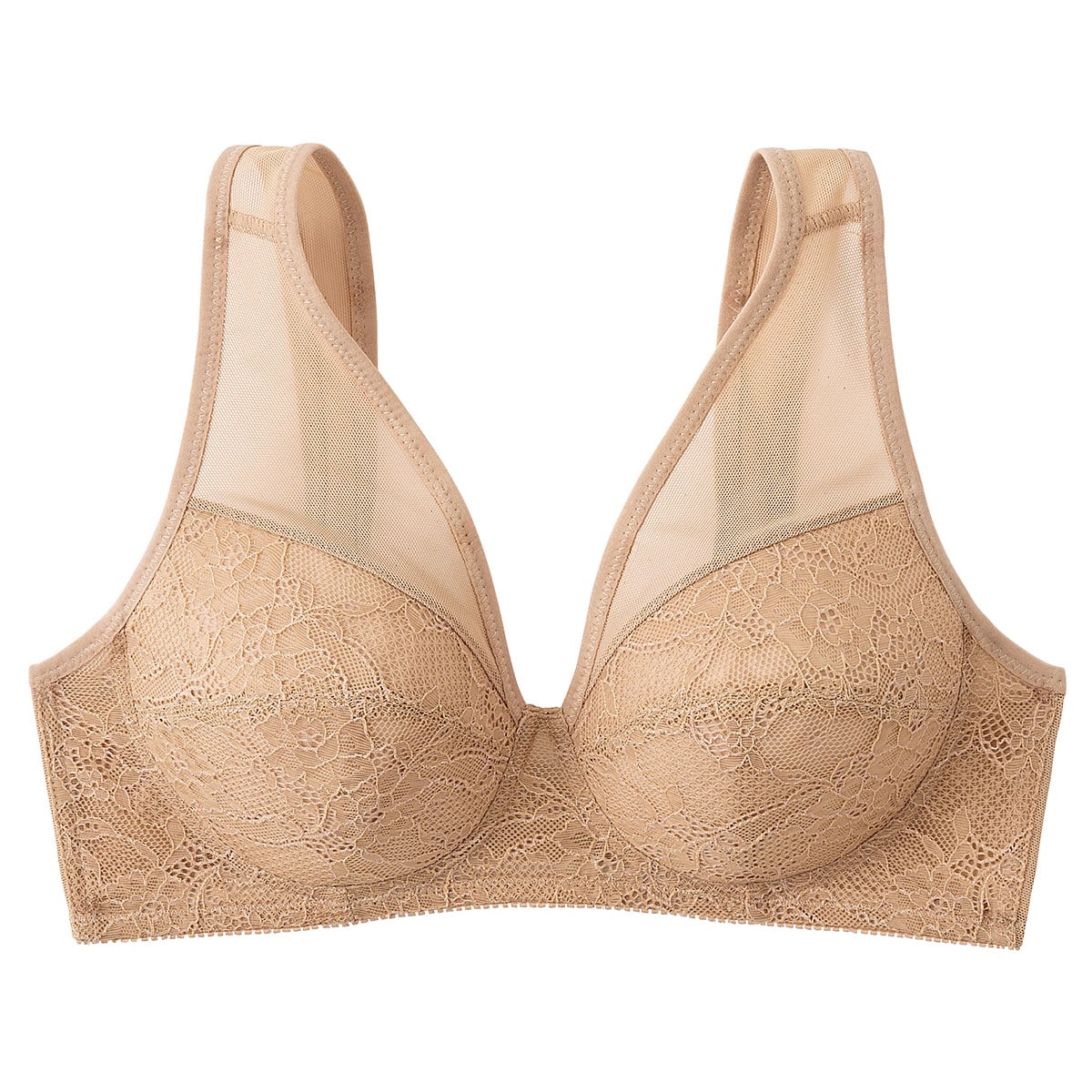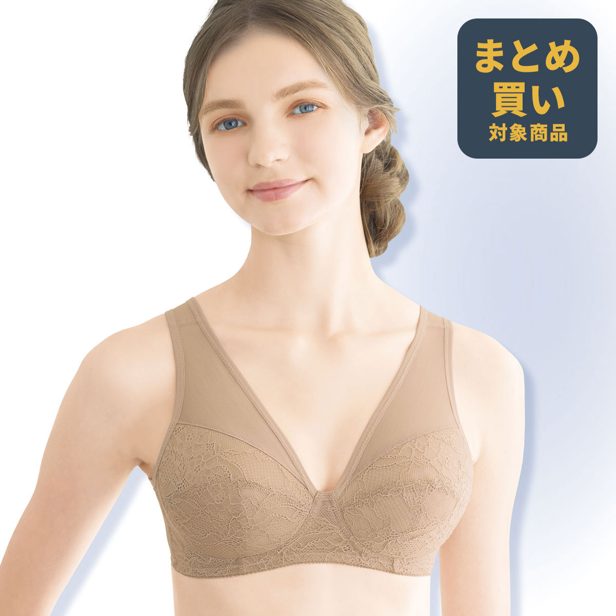プチプラのブラをお探しならこれ!ハッピープライスで買えるお得なノンワイヤーのフルカップブラジャー。シンプルなレースと肌馴染みのいい色でデイリーに使いやすい!バストをすっぽり包み込む安心感のあるデザインで、幅広のストラップで肩もラクです。