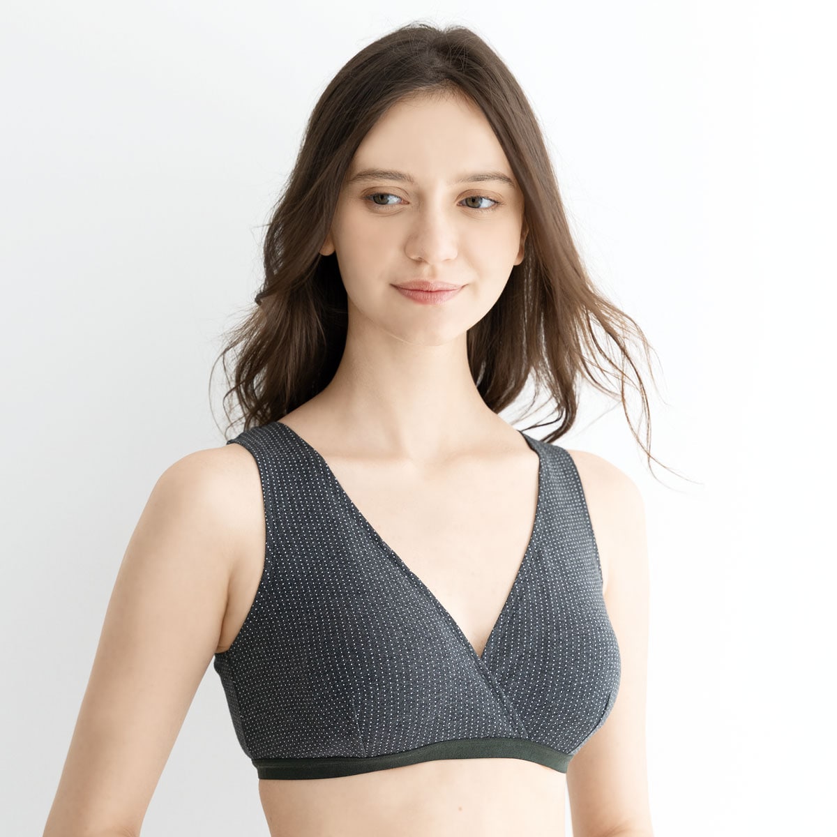 女性の体型変化を知り尽くしたマタニティウェアメーカー・犬印が開発したソフトブラJ(ドットグレー)着用例