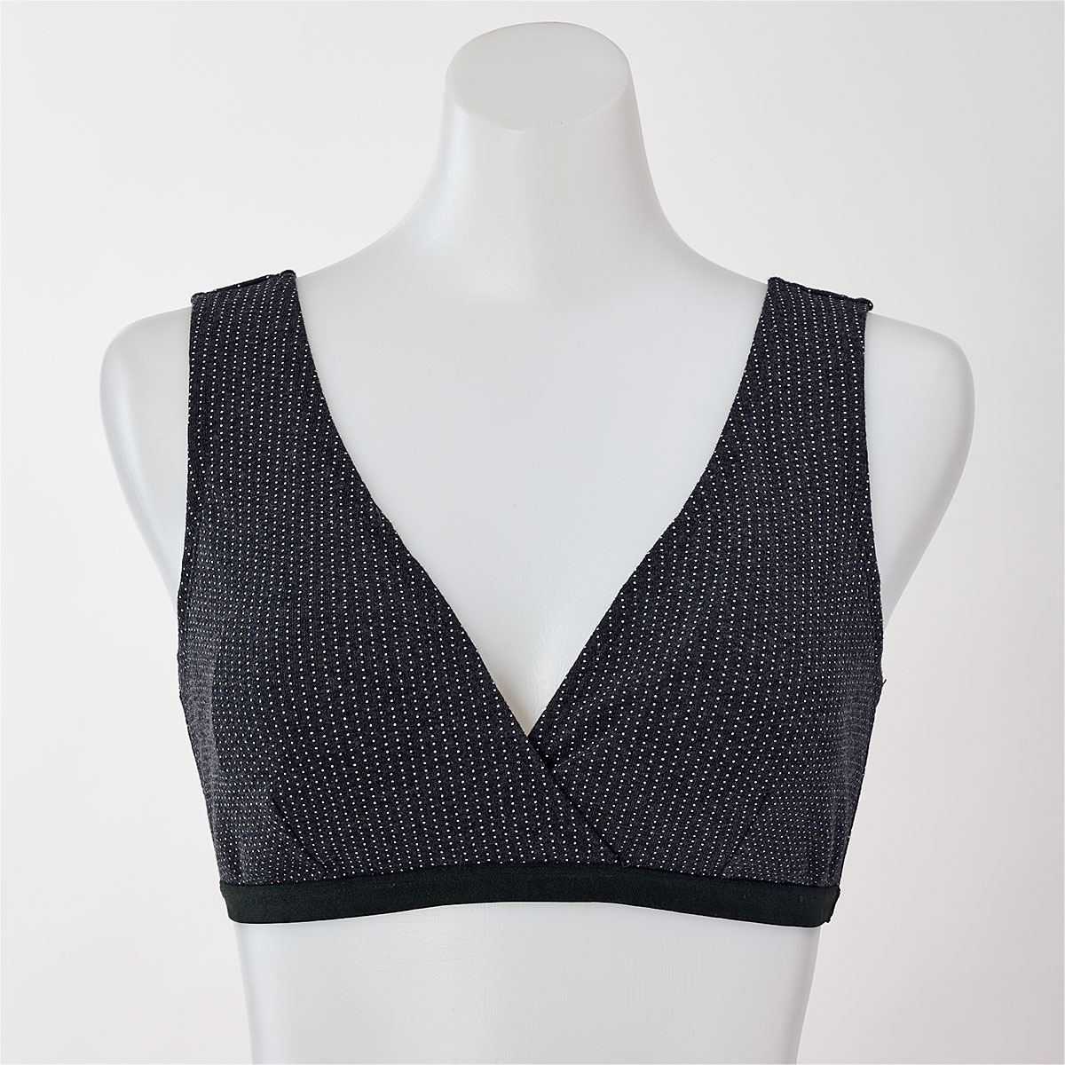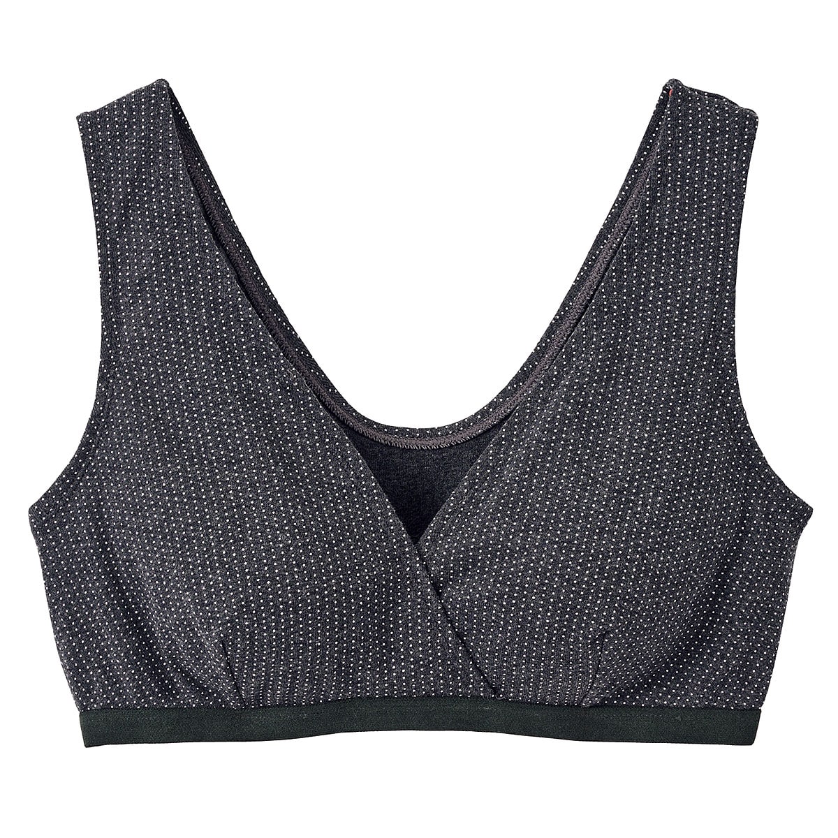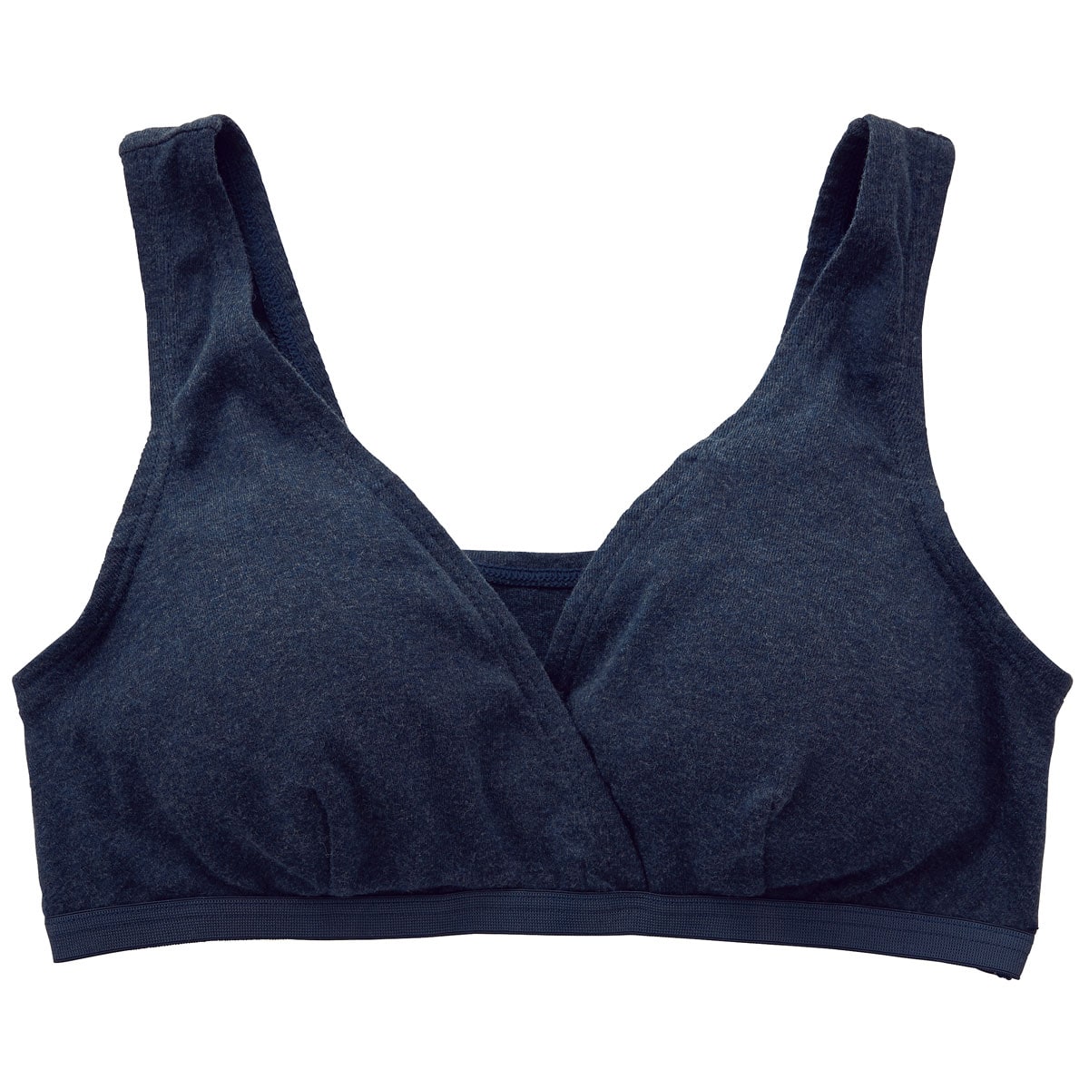女性の体型変化を知り尽くしたマタニティウェアメーカー・犬印が開発したソフトブラ。ソフトなフィット感で締め付けないアンダーゴム使い。カシュクール仕様で着脱もらくちん。気になるバストは取り外しできる柔らかパッドでほどよく整えます。身生地は肌ざわりの良い綿100%。リラックスタイムはもちろん、バストが敏感なときにもおすすめです。