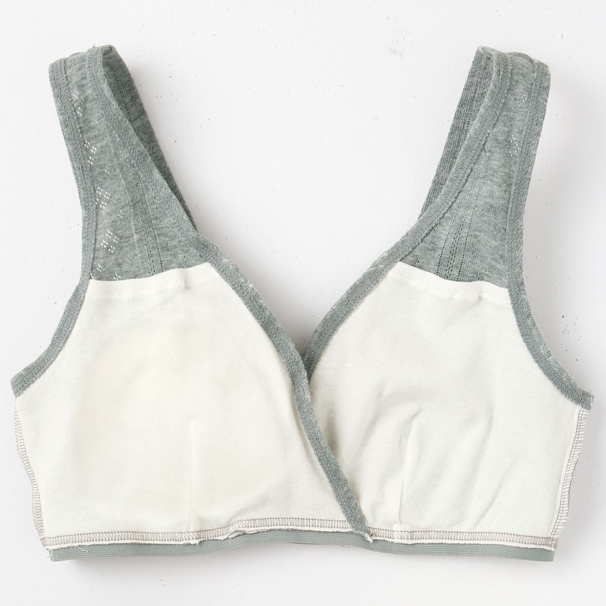 ■身生地=綿100%(A:パターンメッシュ/I・J:フライス)テープ部=ナイロン80%ポリウレタン20%●後ホックなし(かぶりタイプ)●ストラップは調節ができません●カップ裏は綿素材●中国製【綿100%】(身生地)【ノンワイヤー】 【カップ型パッド約4mm】(取り外し可)【大きいサイズも展開】(M~3L)