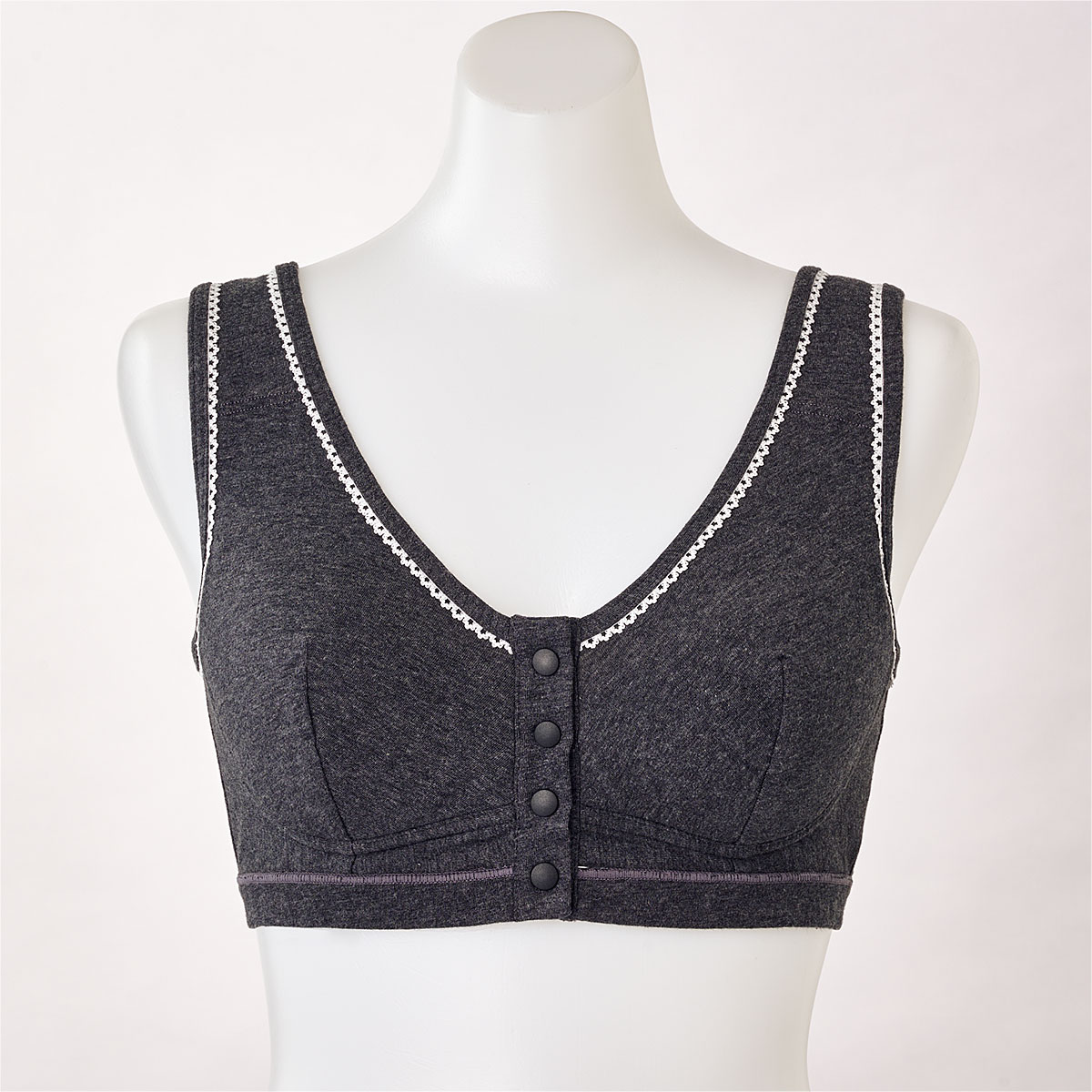 スナップボタンの前開きで着脱簡単ソフトブラチャコールグレー着用例