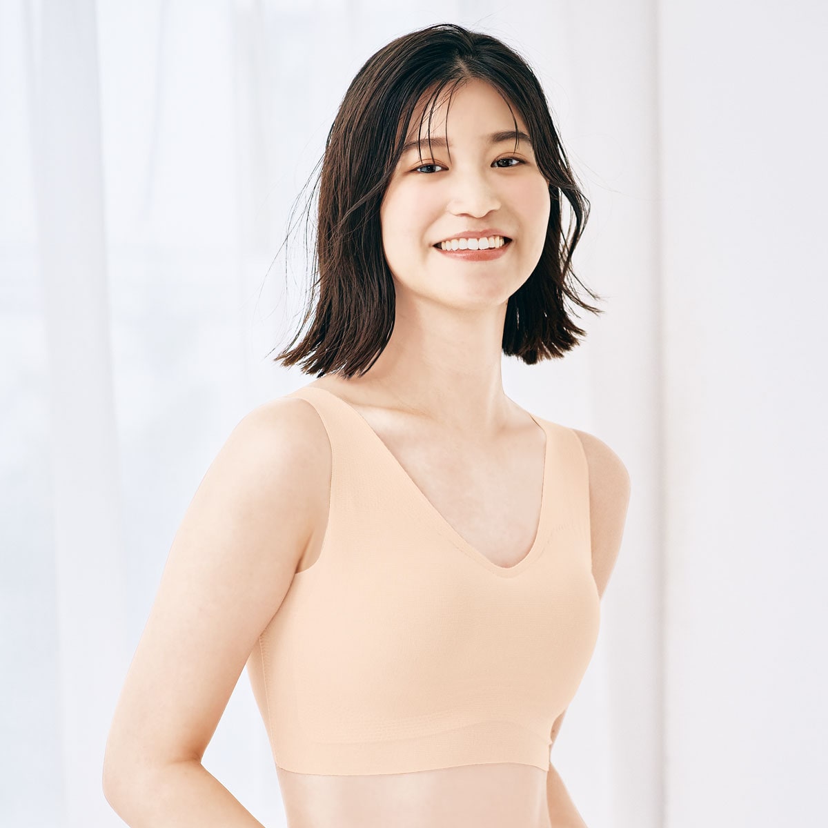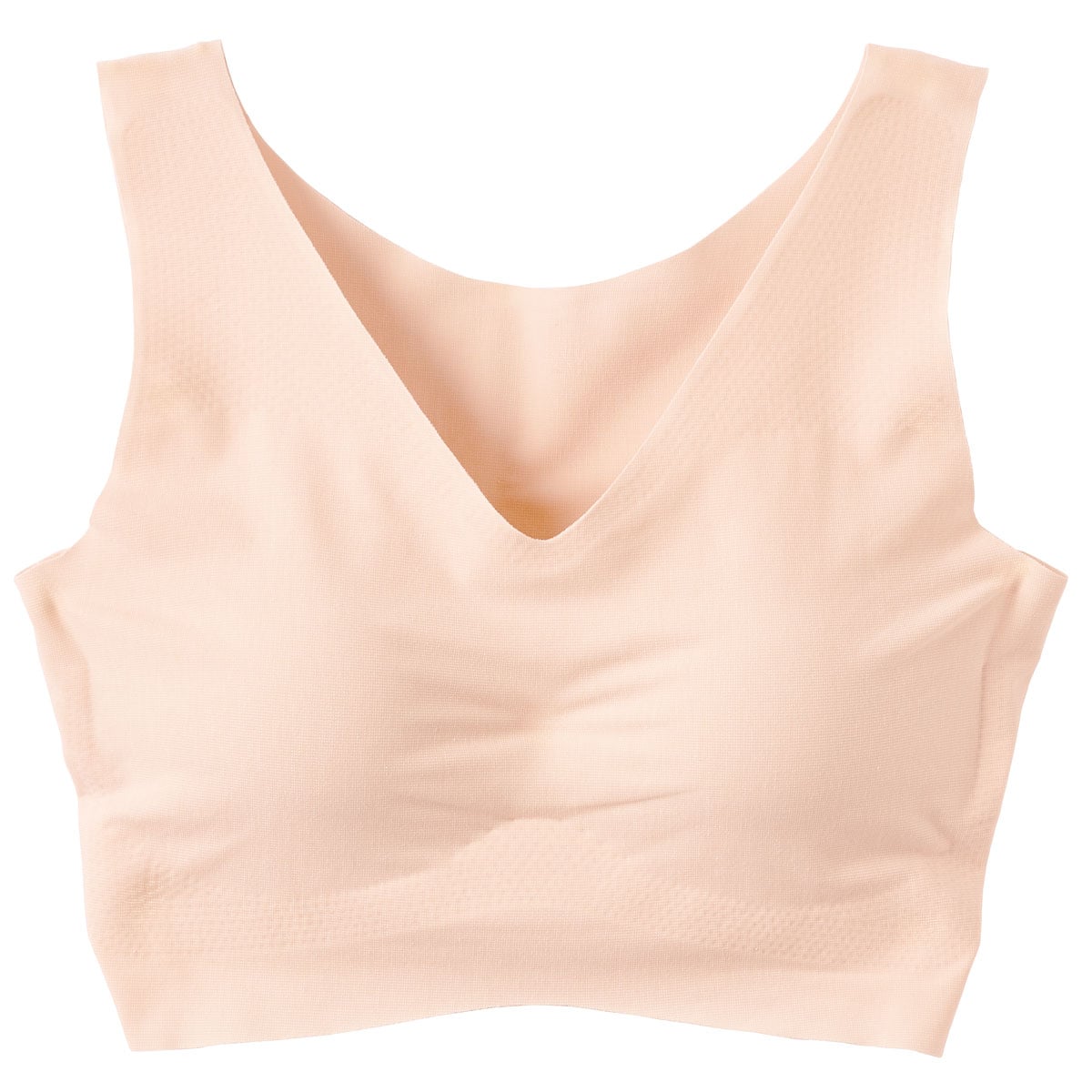 ゴムもぬい目もゼロ。綿混でさわやかな着心地の100%シームレスブラクラウディピーチ 着用例