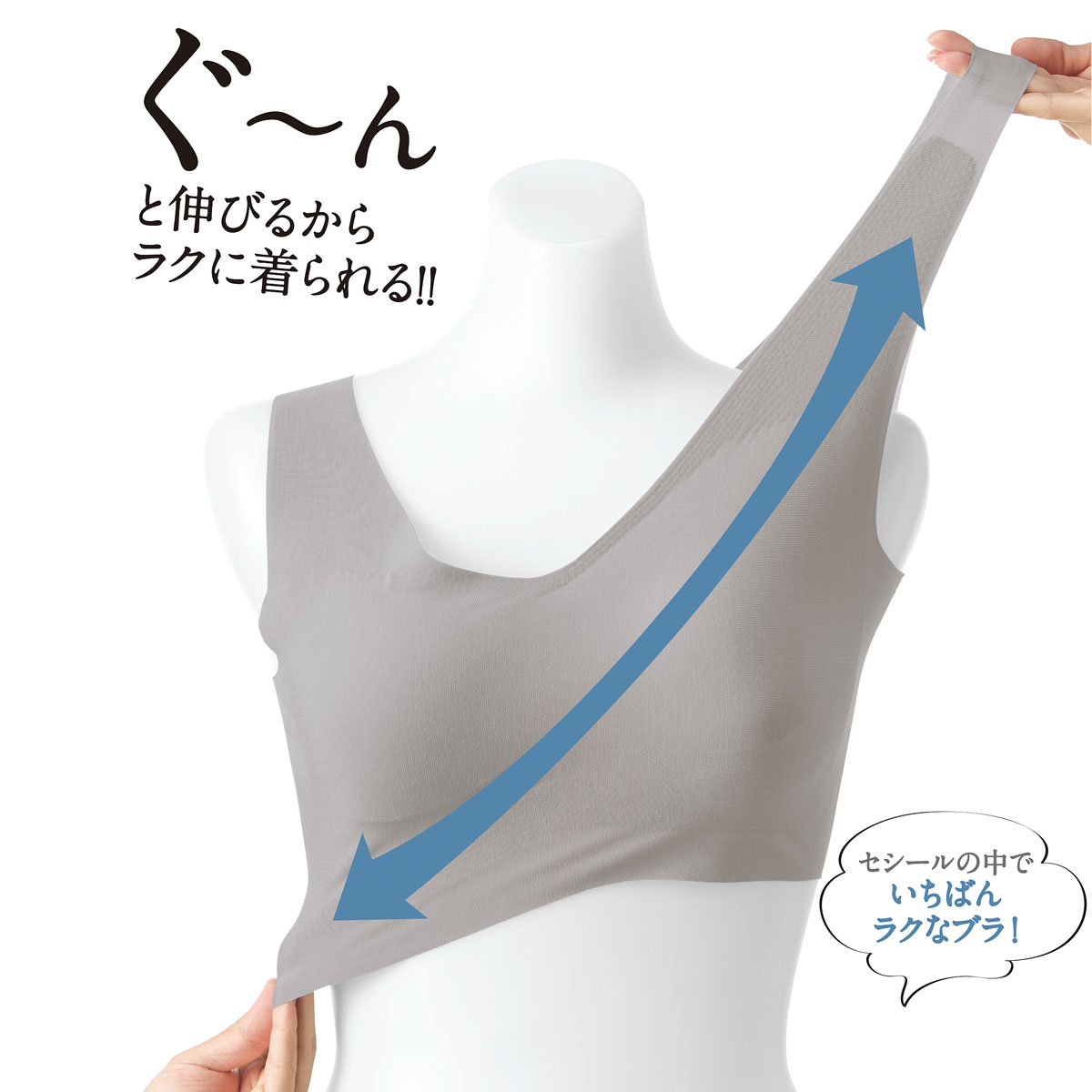 縫い目もゴムも一切ナシ!ぐ~んと伸びる綿混素材が気持ちいい!まるで着けてないみたいなラクちんブラ