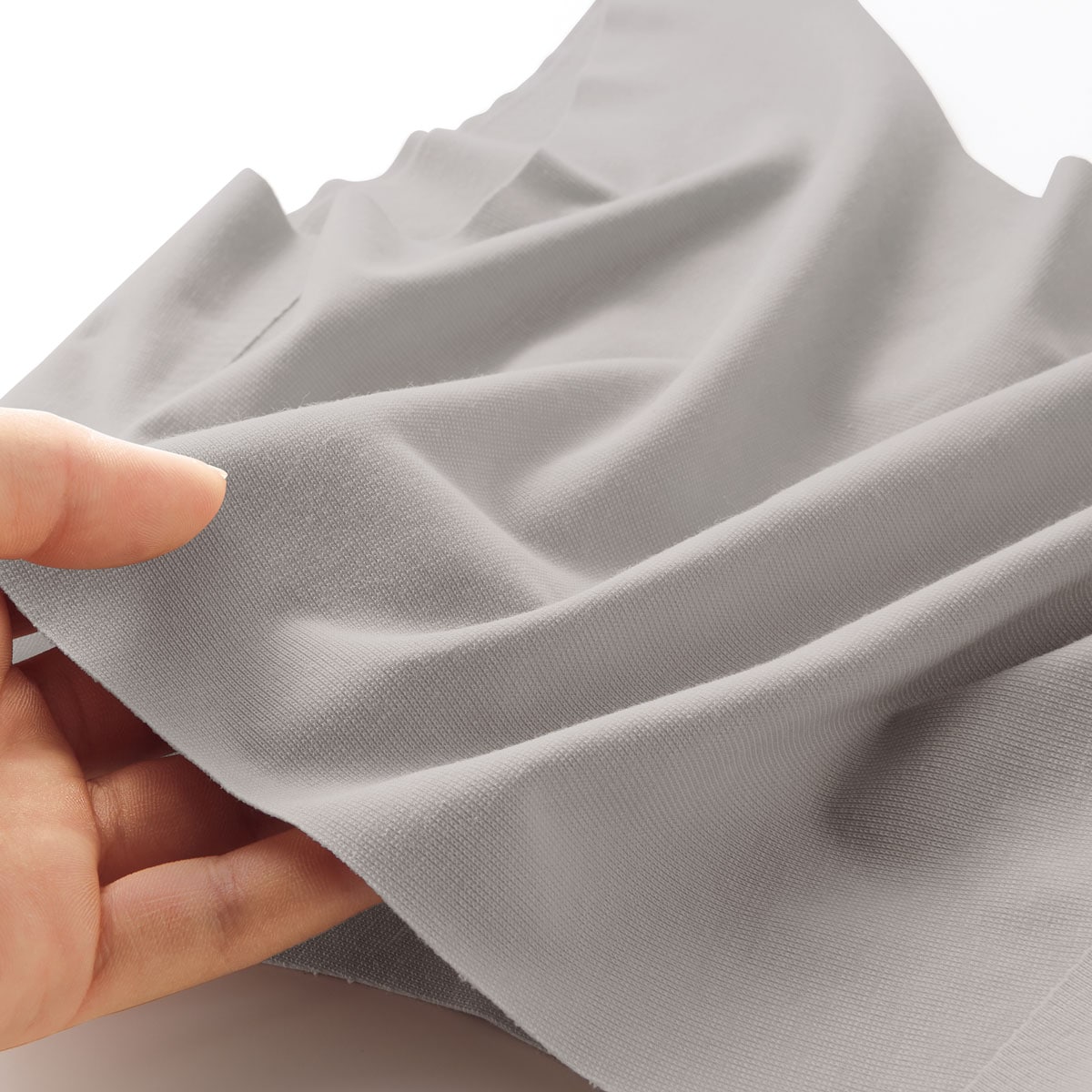 シャリッとして気持ちいい薄手の綿混素材。肌離れもいいので、汗ばむ季節も爽快。
