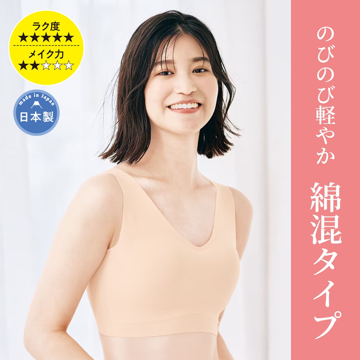 縫い目もゴムも一切ナシ!ぐ~んと伸びる綿混素材が気持ちいい!まるで着けてないみたいなラクちんブラ