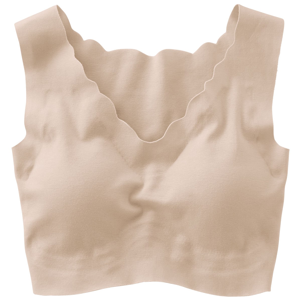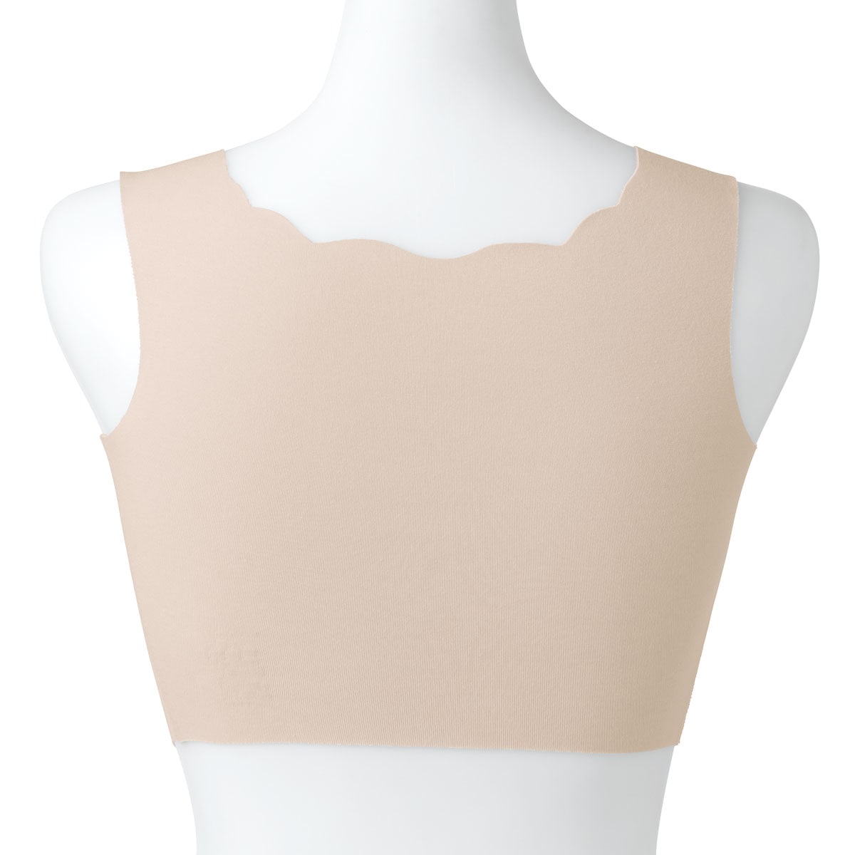 縫い目もゴムもタグもゼロ!完全無縫製&乾燥を防ぐスキンタッチ加工のハーフトップ(GUNZEキレイラボ)。肌あたりの気になるタグはもちろん、ゴムや縫い糸さえも一切使っていないカットオフR(切りっぱなし)仕様で、チクチクやかゆみといった肌ストレスを軽減。伸縮性が高い素材で、体に心地よくフィット。取り外し可能な丸パッドがバストにフィット。大きいサイズ(3L)も展開。(kireirabo)