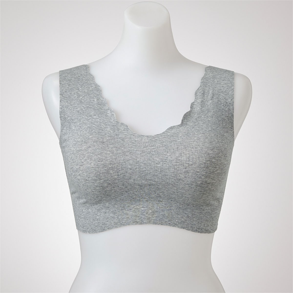 縫い目もゴムもタグもなしで肌ストレスを軽減!締め付け感が少なく、くい込みにくいカットオフ(切りっぱなし)仕様の完全無縫製ハーフトップ(GUNZEキレイラボ)