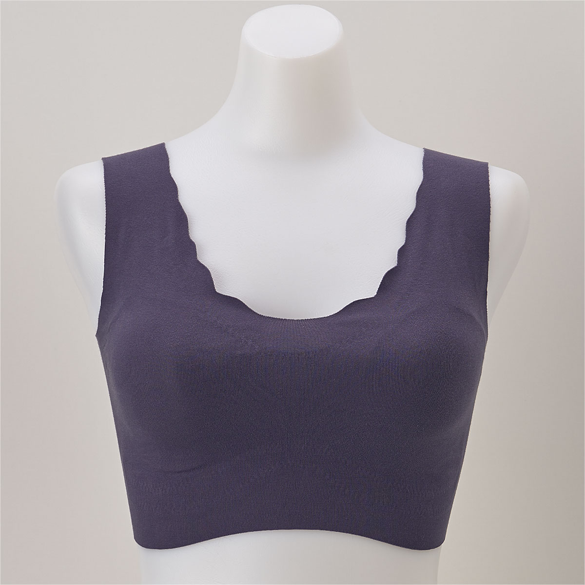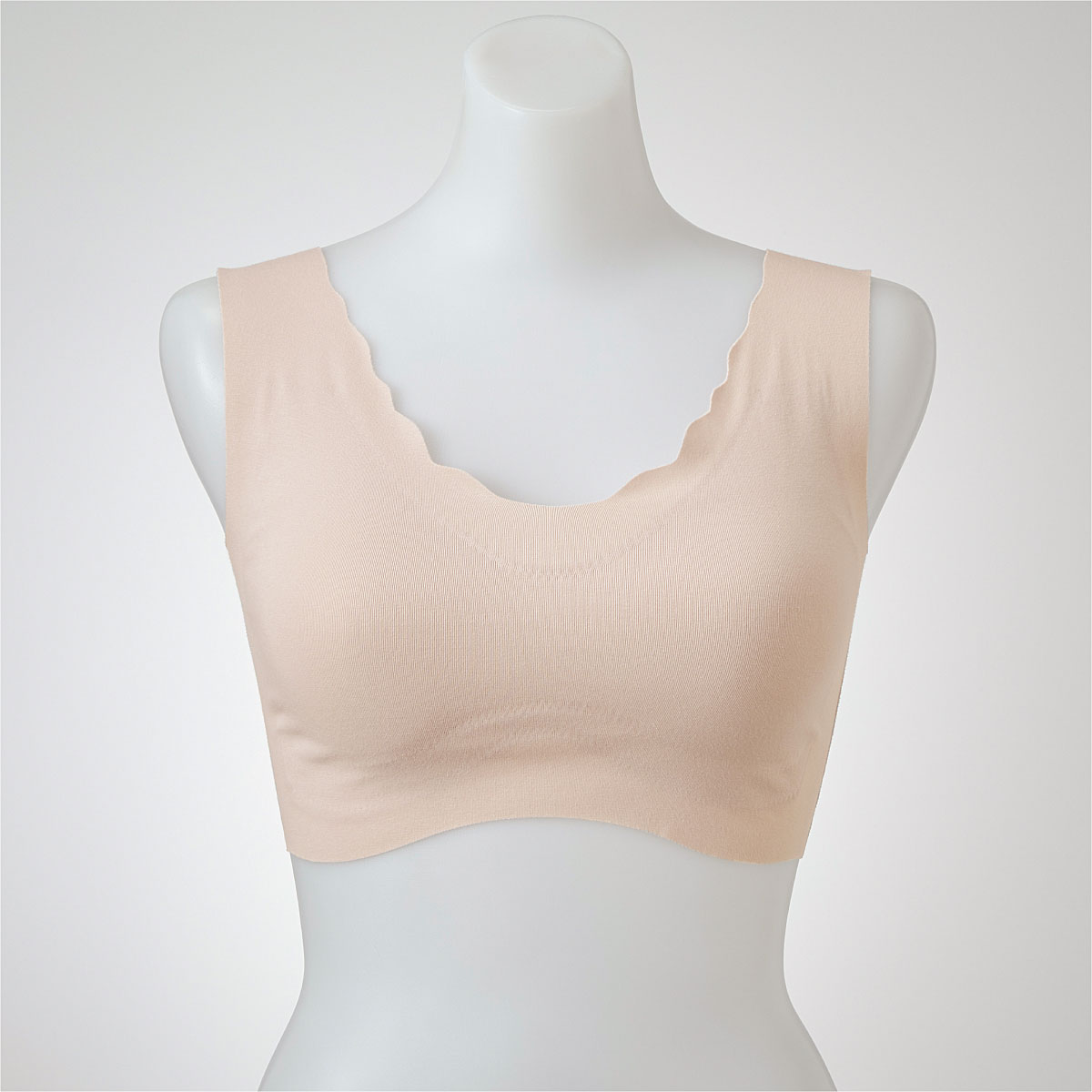 大きめの丸パッドがバストにフィット。カップ挿入口も縫い目なしでやさしい。