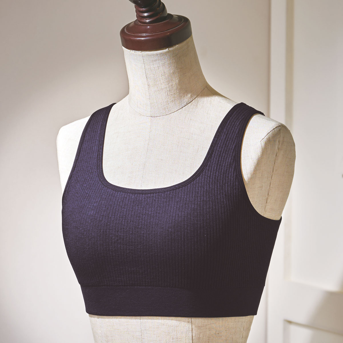 ■本体=綿44%ナイロン32%絹15%ポリウレタン9%●後ホックなし(かぶりタイプ)●ストラップは調節ができません●カップ裏はポリエステル素材●中国製【ノンワイヤー】 【取り外しパッドなし】 【ブラバック/U字型】