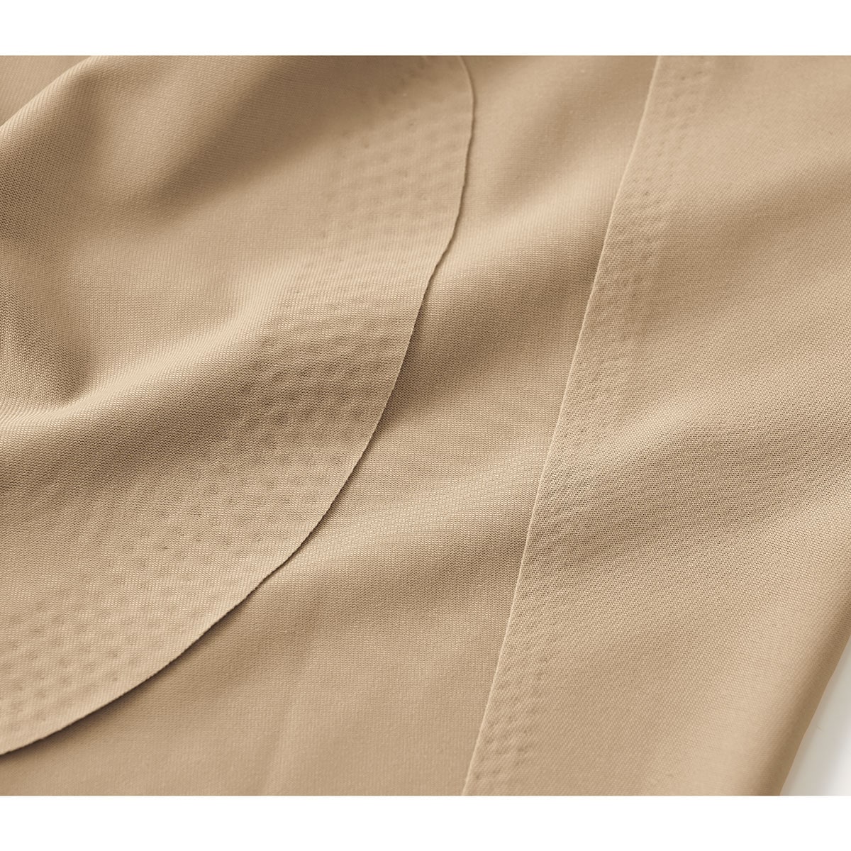 伸びのいいなめらかな生地が締めつけ感なく肌に馴染む。生地は吸汗速乾で汗をかいてもべたつきにくく快適。