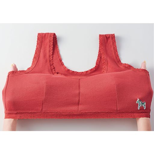■本体=綿73%ナイロン25%ポリウレタン2%(ストレッチ片袋)、レース部分=ナイロン・ポリウレタン(ストレッチレース)●後ホックなし(かぶりタイプ)●ストラップは調節できません●カップ裏は綿混素材●日本製【綿混】 【下厚カップ型パッド約5mm】(取り外し可)【ブラバック/U字型】