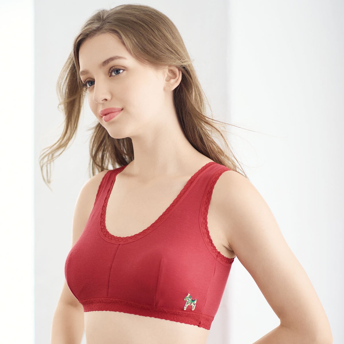 プレゼントにも!「新年の幸せを願う」アップリケ付き綿混ソフトブラ