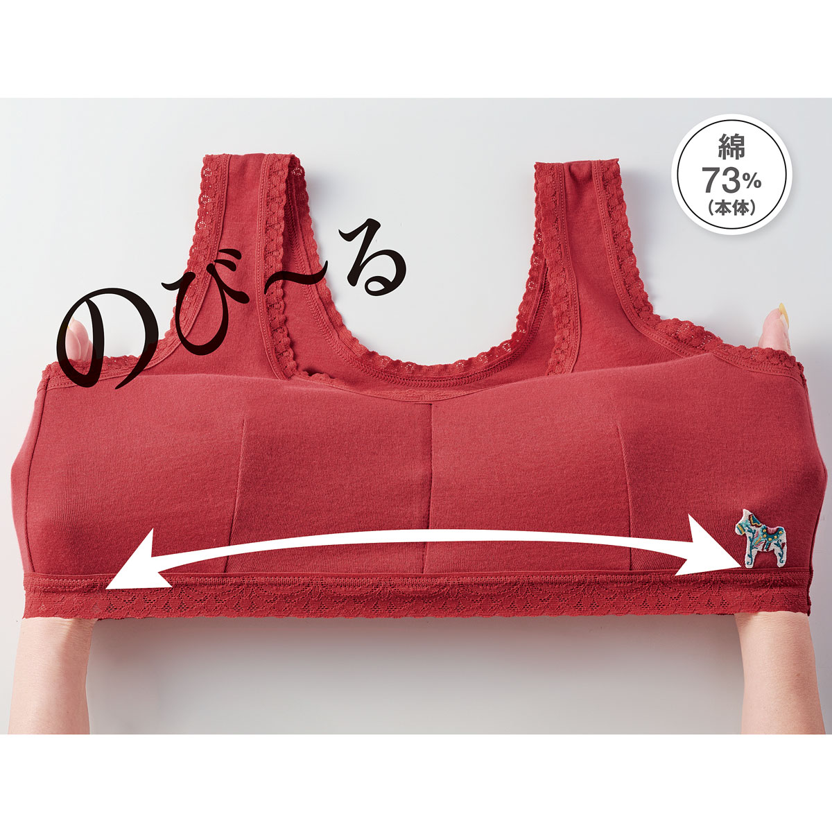 身生地はグ~ンとのびる快適綿混素材。アンダーはストレッチレース付きでソフトなフィット感。
