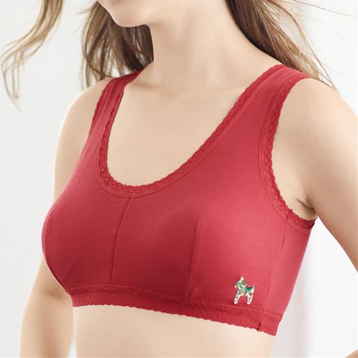 「新年の幸せを願う」アップリケが付いたやさしい着心地のソフトブラレッド(ウマ)着用例