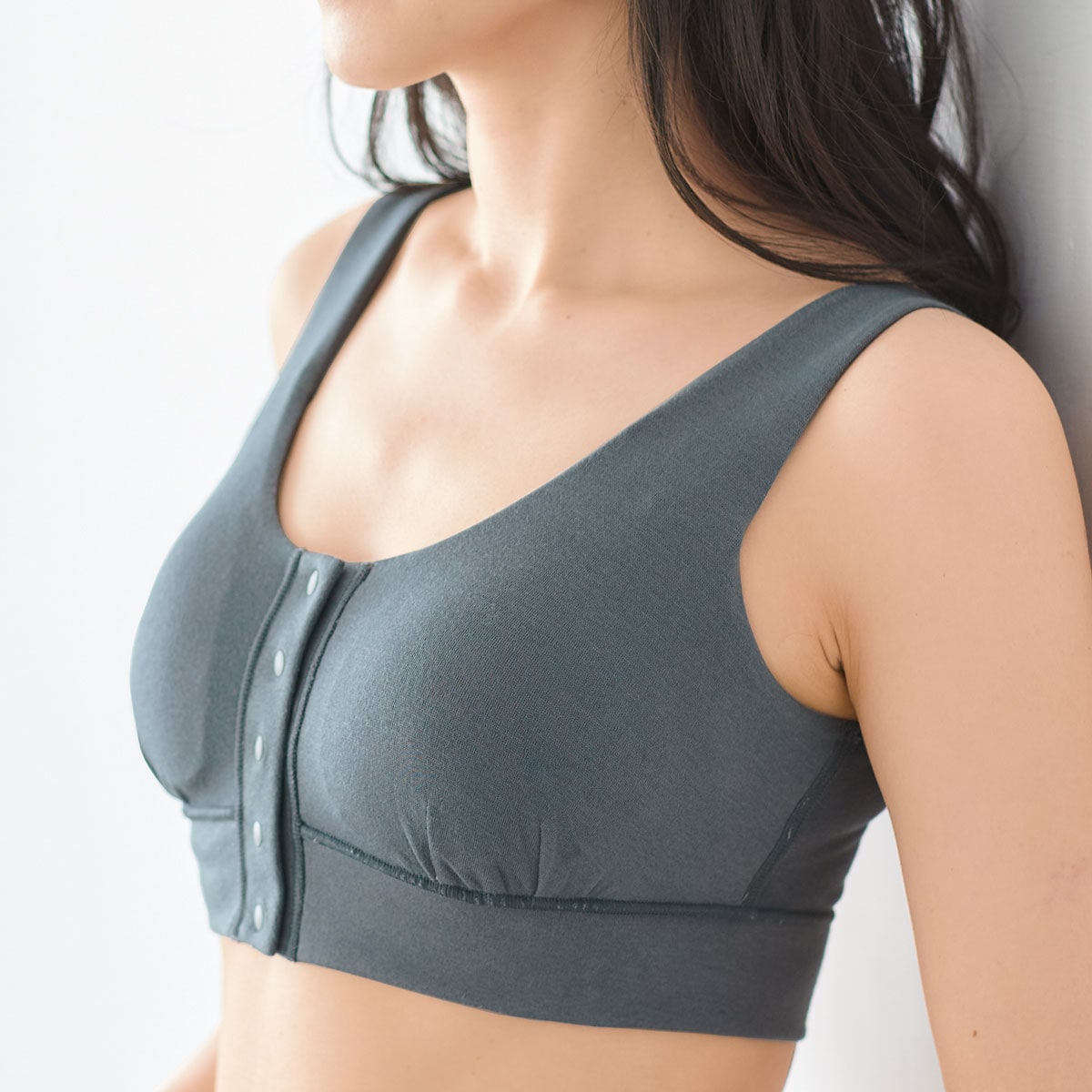 綿混素材を使用しやさしさにこだわったブレストケアブラチャコールグレー着用例