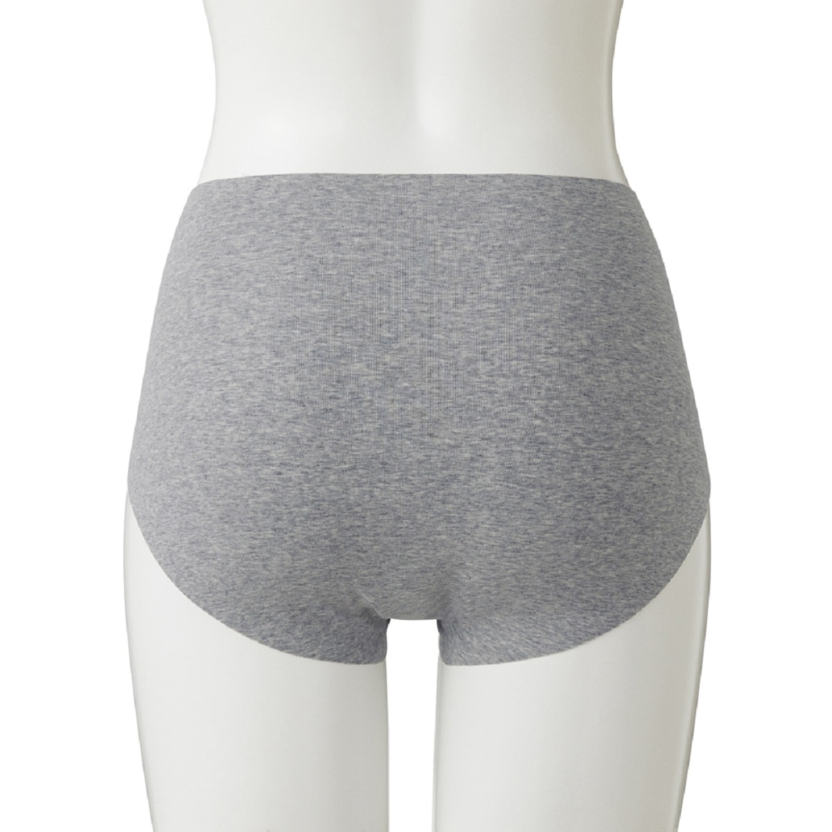 吸水量10ccで気軽に始められる吸水ケアショーツ。マチ部はスリム構造トリプルガードですっきり着用いただけます。完全無縫製だから、ヒップラインが気になりにくい。マチ部は消臭加工で安心です。体調の変化がわかりやすいよう、マチはグレーカラー。