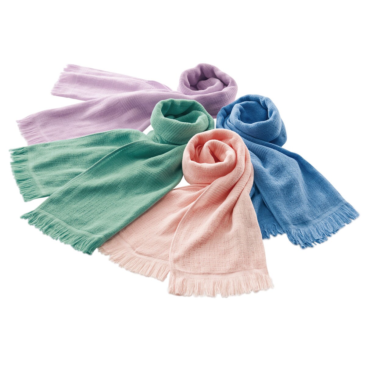 軽くてかさばらず毎日洗って使うことができる、シーズンタオルマフラーです。