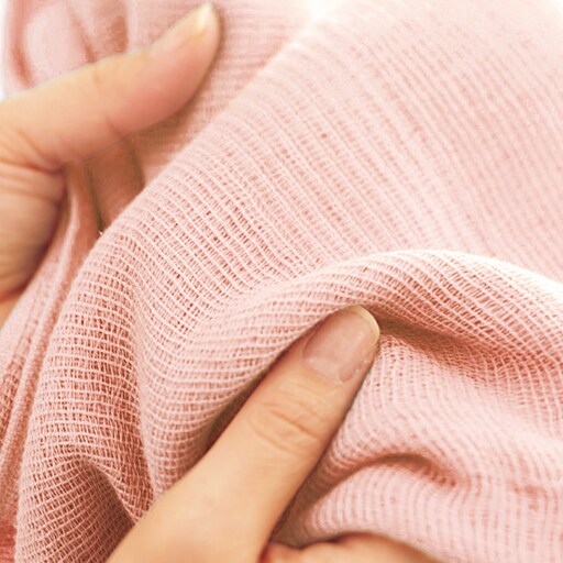 ベビーピンク縦糸にオーガニックコットンを使っているので、軽くてやさしい肌ざわり。